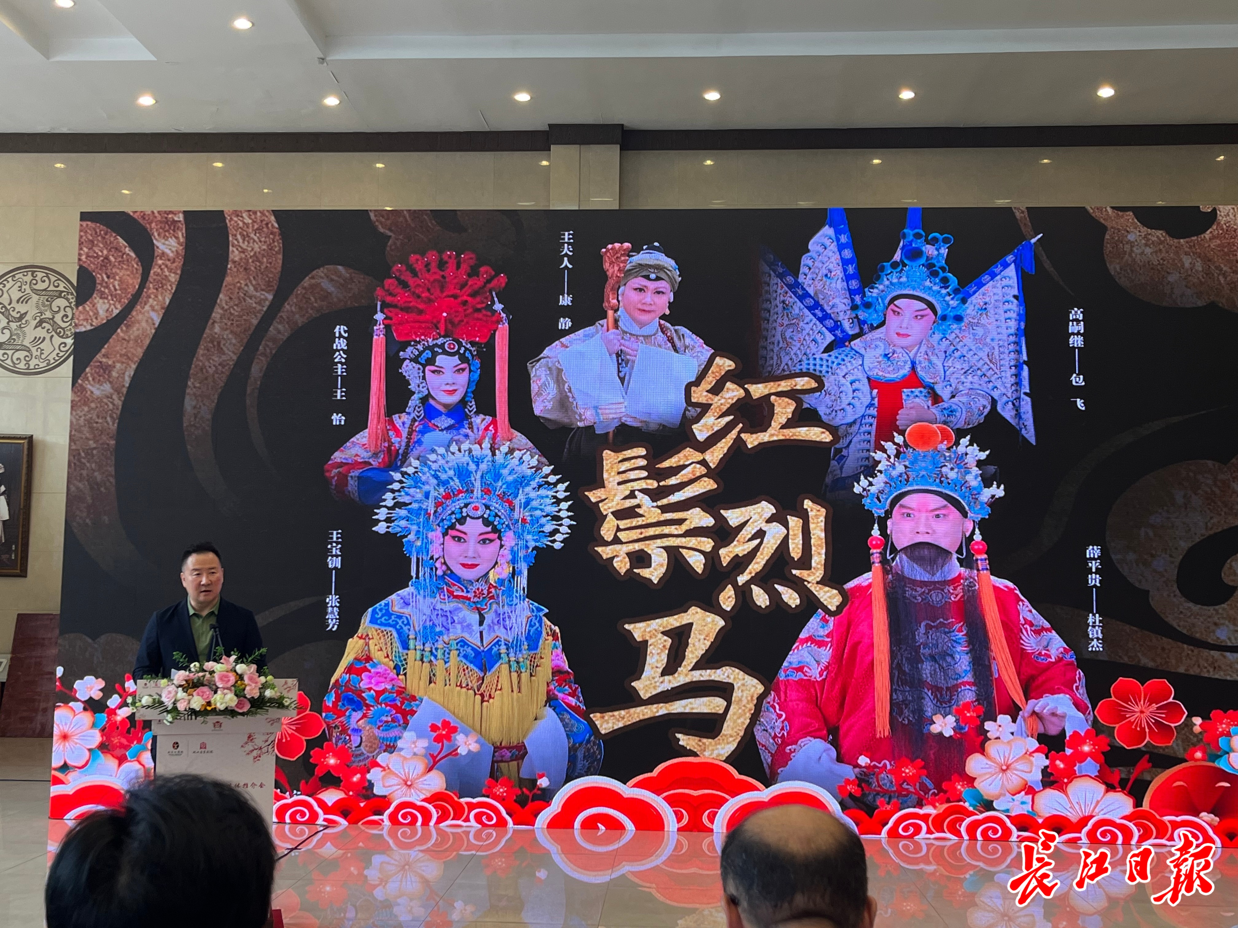 推介会现场,湖北省京剧院梅派青衣潘欣即兴演唱《霸王别姬》选段;国家一级演员、梅派传人胡文阁深情演唱《梨花颂》经典旋律,其精湛表演展示了梅派艺术的独特韵味与魅力。两人的演唱赢得了现场观众阵阵掌声。