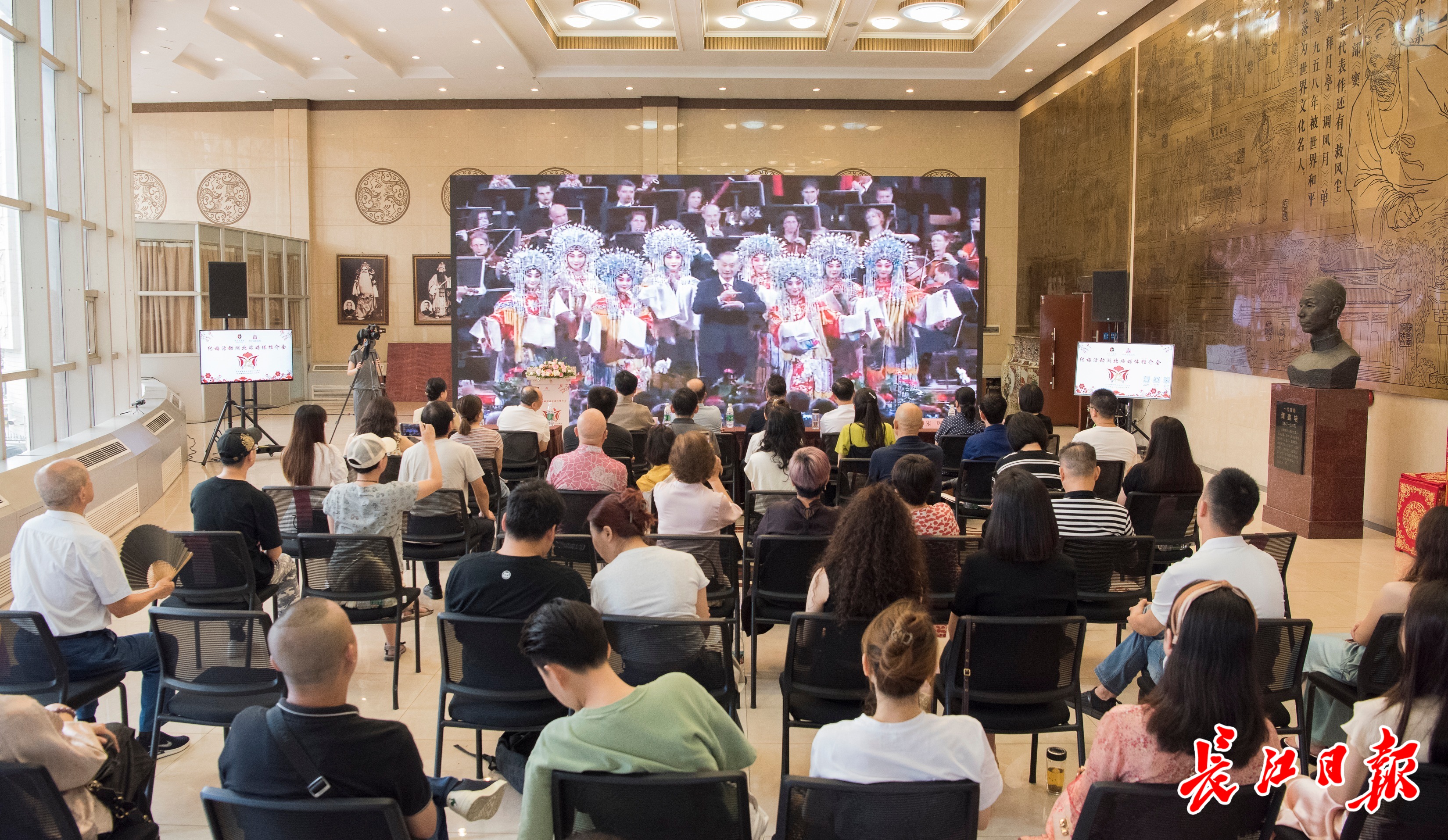 推介会现场播放梅兰芳、梅葆玖艺术生涯纪录片。 记者万建辉 摄