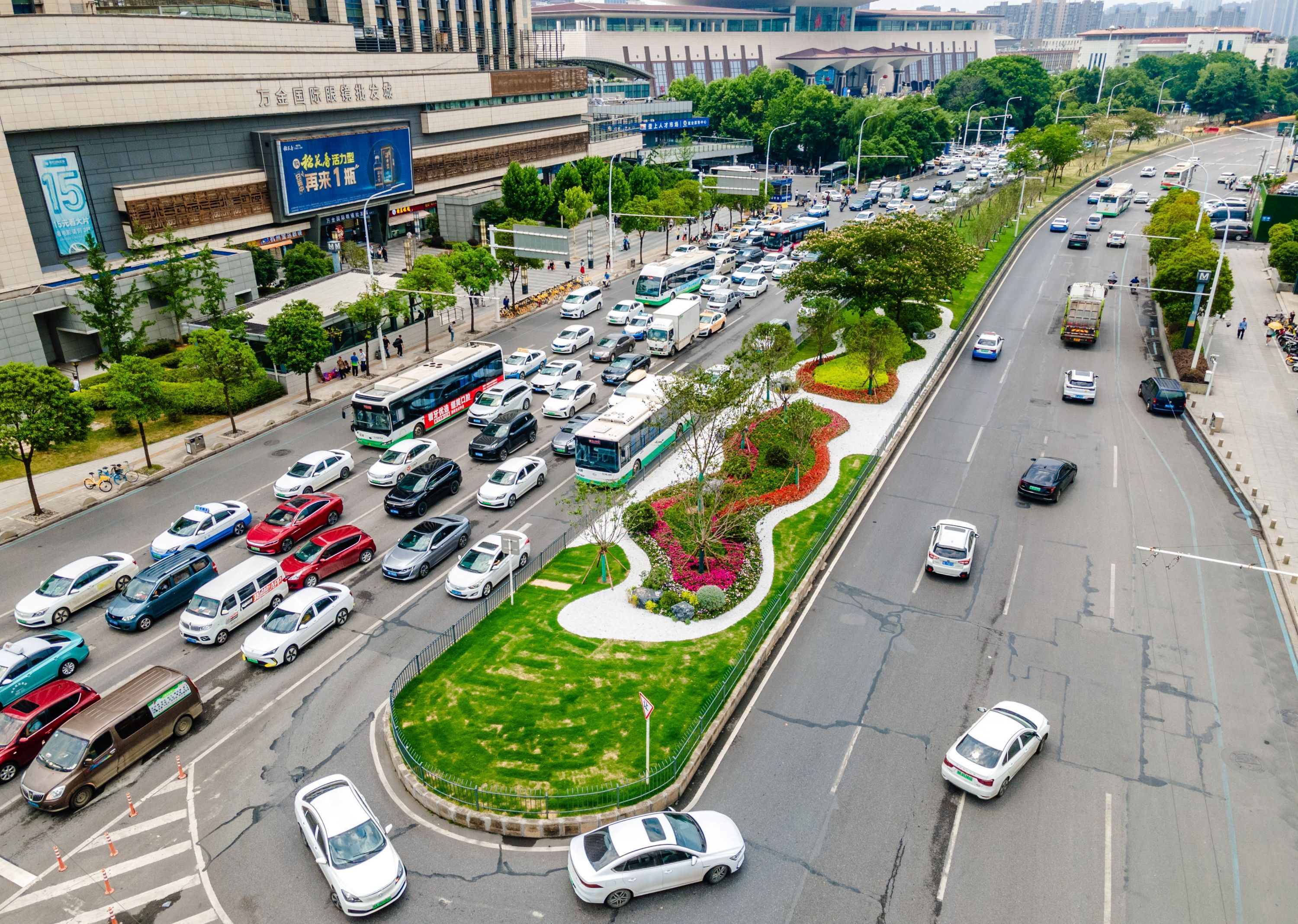 在武昌区的中山路,从宏基客运站至武昌火车站南侧的道路中心花坛,经过改造提升,景观大变样。