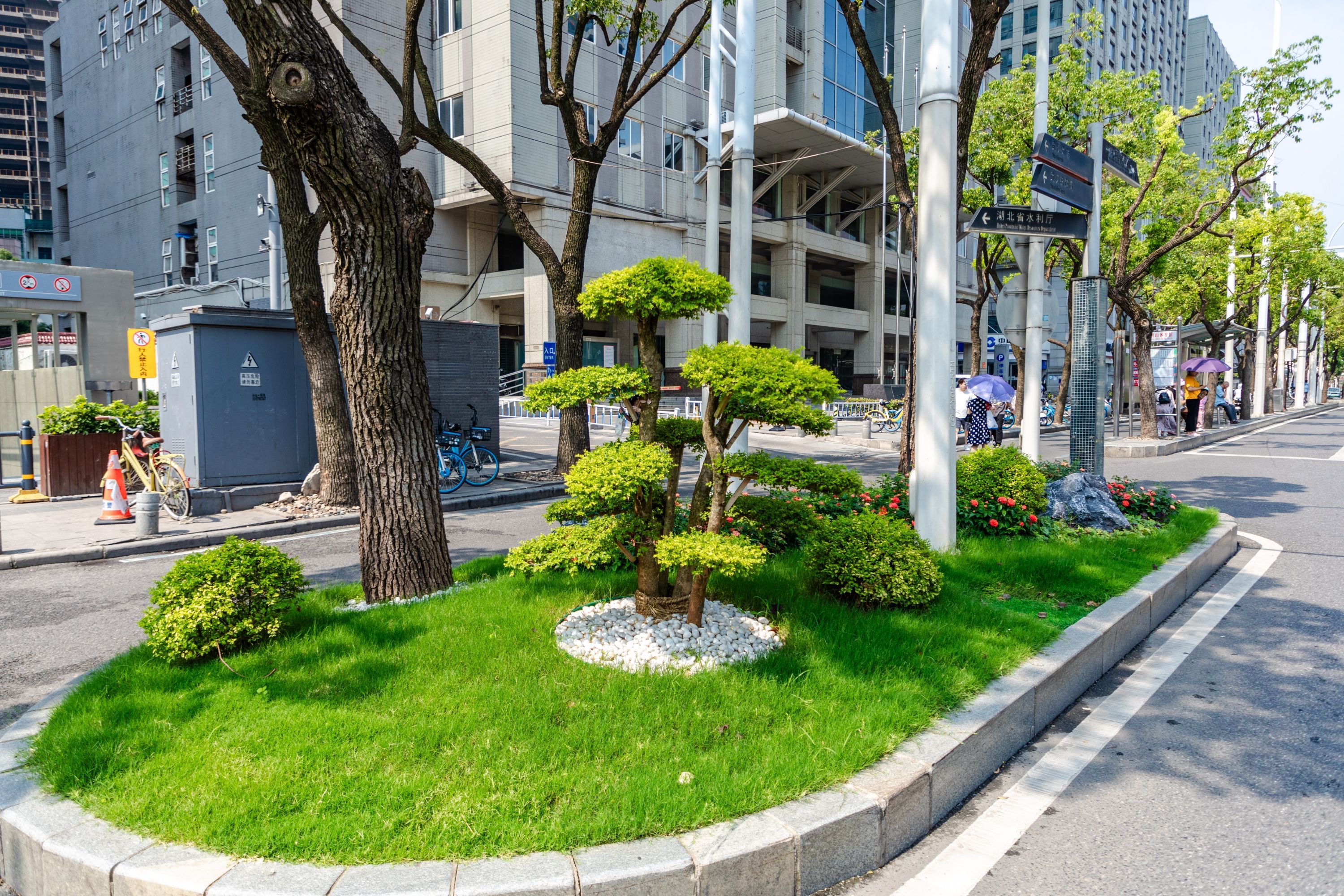 记者在友谊大道与秦园路交会处看到,路口南侧是长江公铁隧道的出入口顶部。这里两个小花坛经过改造后种植了3株朴树、2株樱花及小面积草坪。草坪上可以摆放时令花卉,使路口四季有花可赏。