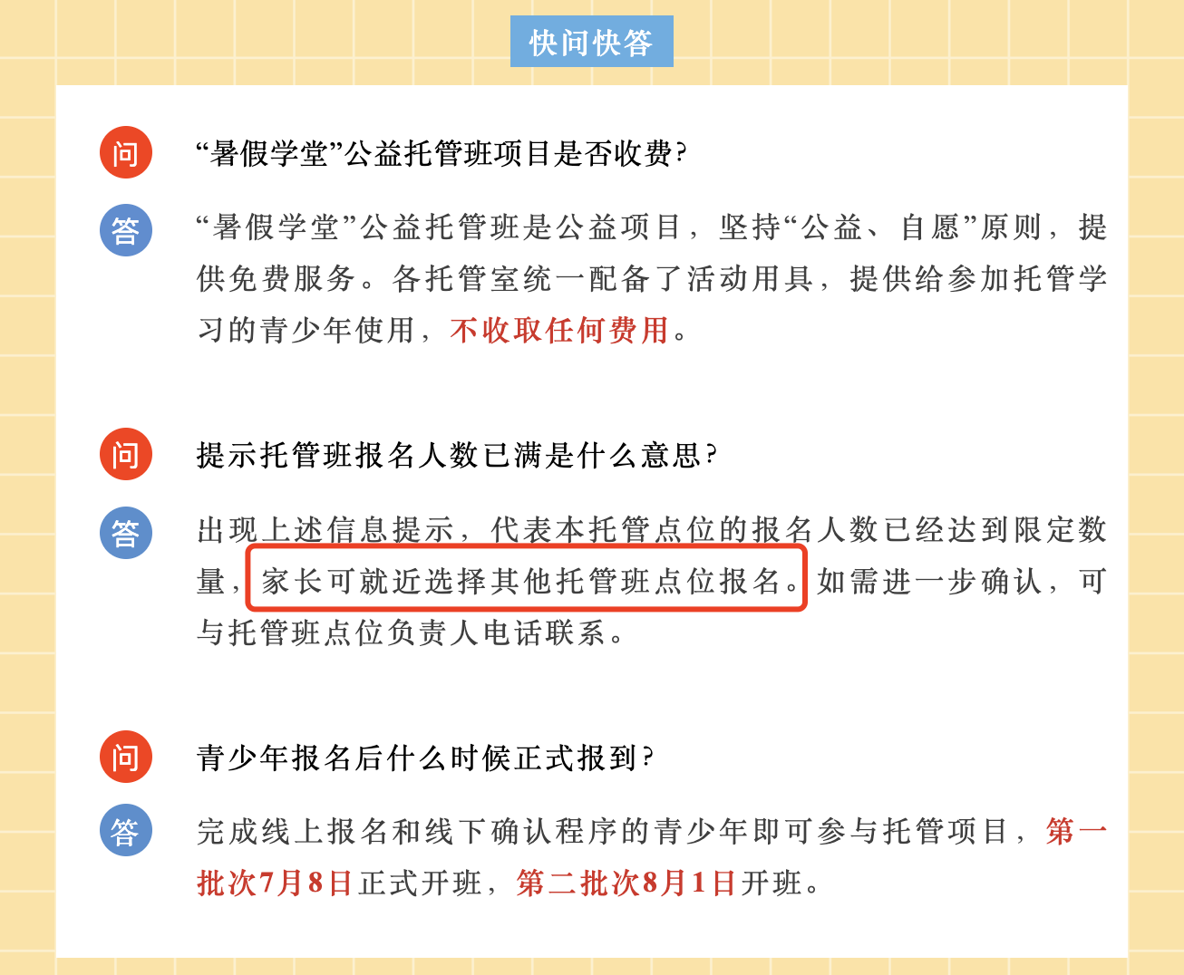 “今年我们迈出了第一步,就是想做成公益普惠活动。”7月16日,记者将以上问题与团市委学校和少年部相关负责人一一沟通后,该负责人表示,我市此前连续15年的暑期托管活动都是线下报名,今年首次尝试在线上开放报名系统,就是要确保报名过程的公开透明,后续仍会坚持线上报名。
