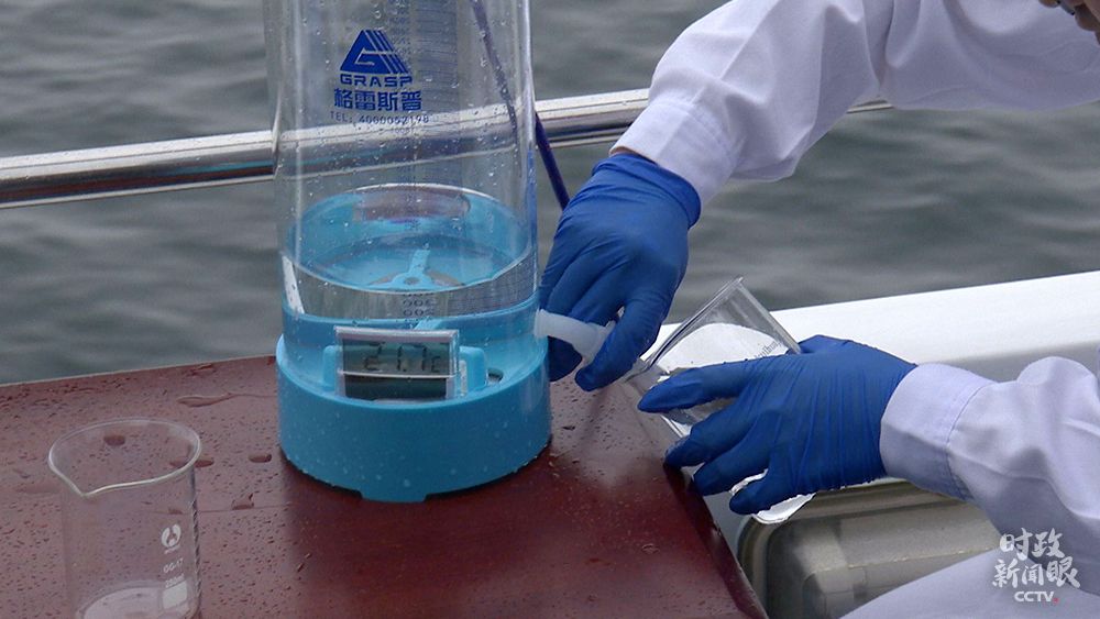 这是考察当天,现场从丹江口水库取出的水样。(总台央视记者李铮拍摄)