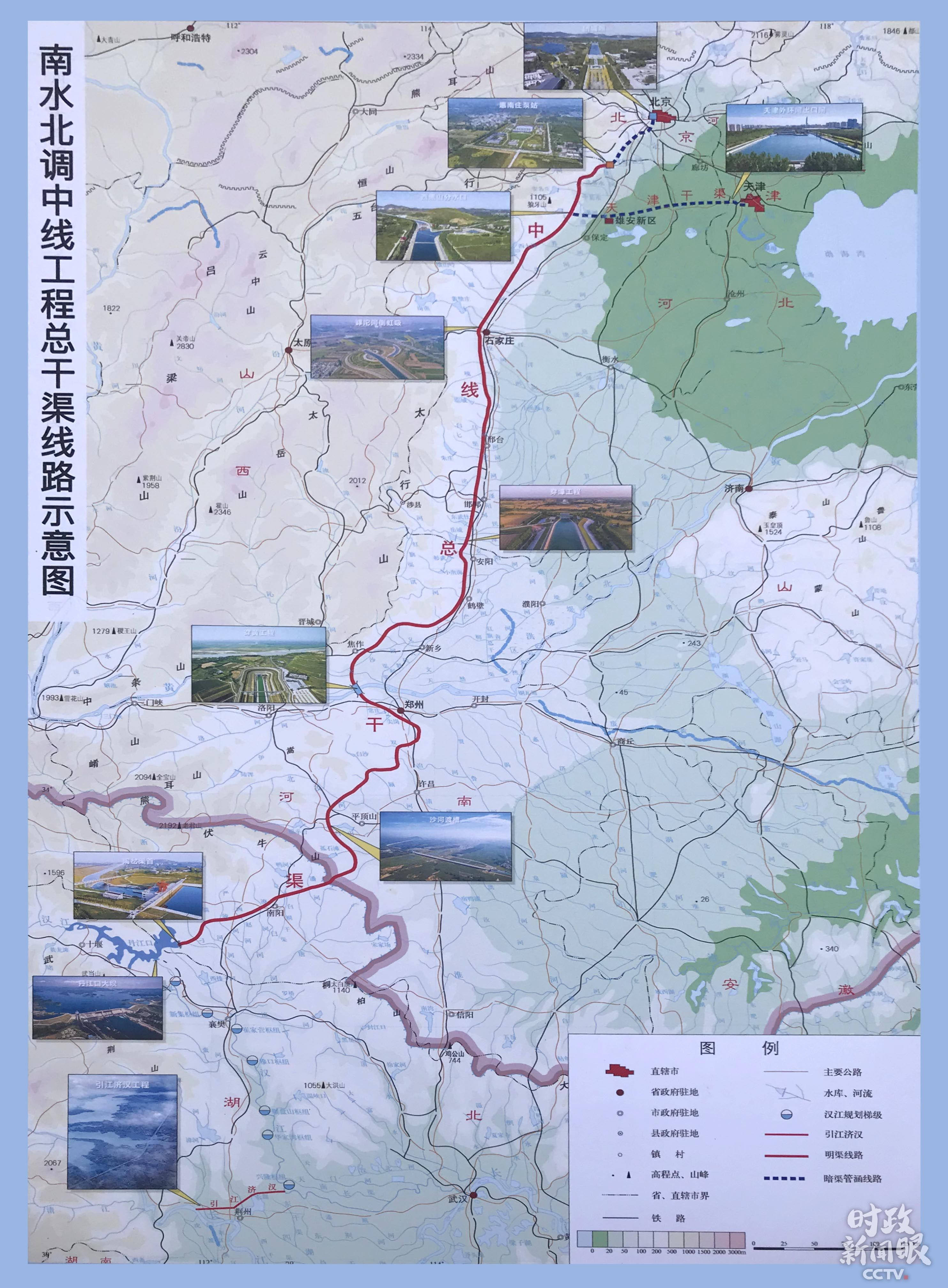 南水北调中线工程总干渠路线图(总台央视记者石伟明拍摄)