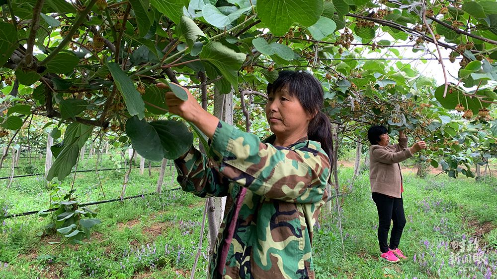村民正在为猕猴桃疏果。(总台央视记者段德文、卢心雨拍摄)