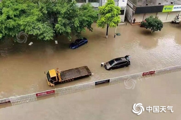 近期,广西北部遭遇强降雨,罗城县城低洼路段出现内涝。