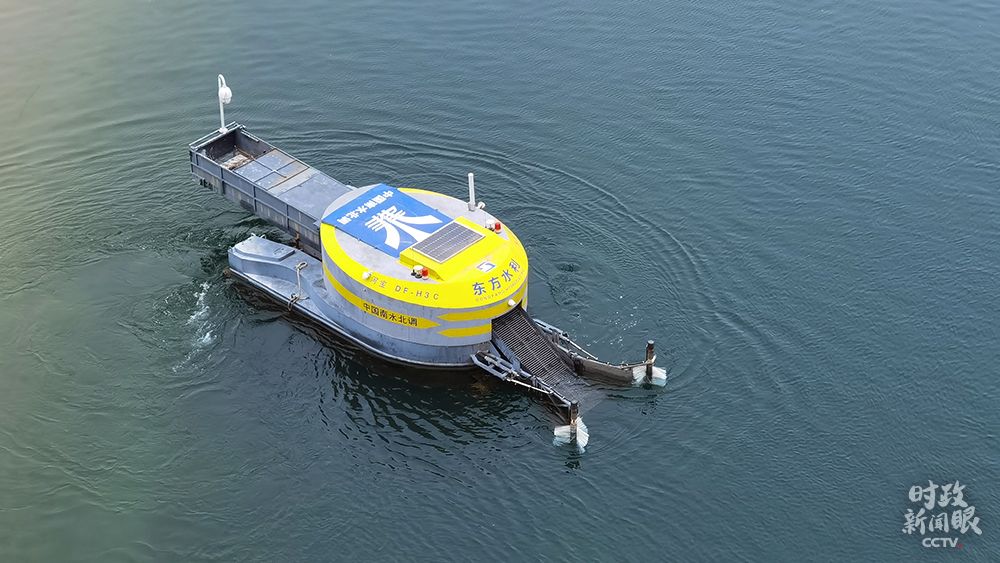 形似小船的清漂机器人自带摄像头,能自动寻找水面垃圾。(总台央视记者马立飞拍摄)