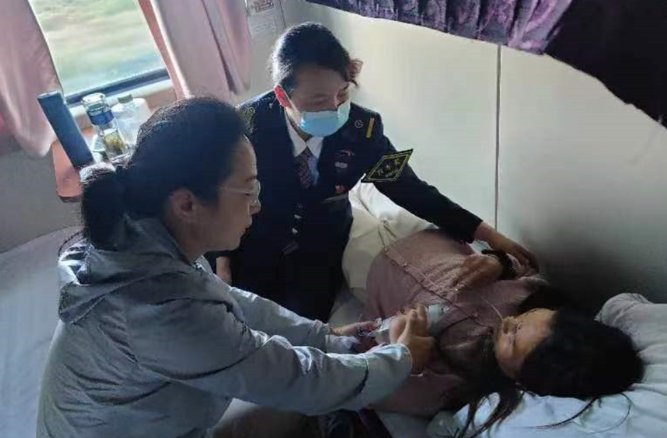 在排除该乘客无糖尿病的基础上,梅彰桢立即给她口服了5%葡萄糖液,同时在列车长的协助下,让患者呈15度半靠在卧铺上静卧休息。“不用紧张,我们就在你身边陪着!”听到这一句安心的话语,10余分钟静息后,该乘客面部及嘴唇色泽逐步恢复转红,脉搏从起初的120次/分降至90次/分,“谢谢你们,我心慌好多了!”看到发病乘客病情稳定,大家悬着的一颗心暂时放下。