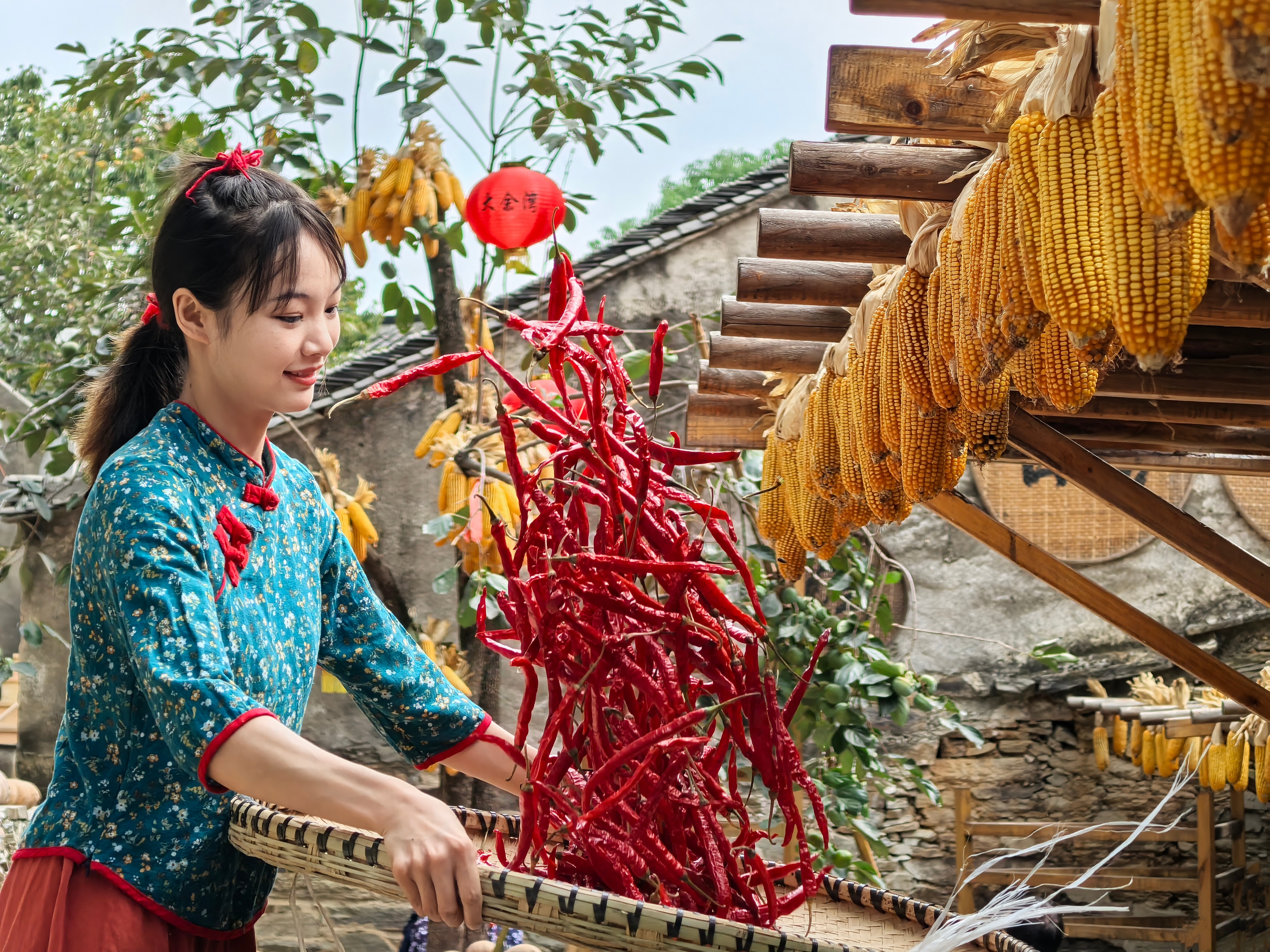 去年,凭借金秋晒颜值,黄陂大余湾全网曝光率达2000万。今年,600余岁的大余湾再次迎来晒秋盛宴。金黄色的玉米棒子挂满了屋檐、树枝,红彤彤的辣椒串成了喜庆的珠帘,还有那沉甸甸的南瓜、饱满的稻谷,让丰收的喜悦扑面而来。