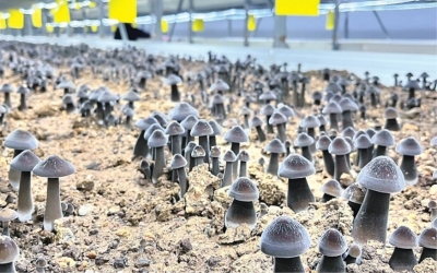 黄陂区白塘村的珍稀食用菌工厂里,黑皮鸡枞菌茁壮成长。