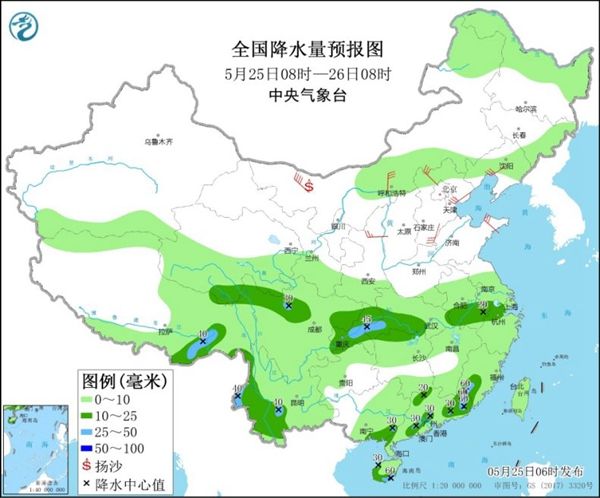 今天(5月25日)南方降雨仍处于“休整期”,雨势普遍不强。明天,南方降水将再度加强,江南等地部分地区有暴雨。月底前,南方降雨仍然比较频繁,需注意防范。气温方面,东北本周气温持续偏低,华北、黄淮等地以升温为主,昼夜温差较大。