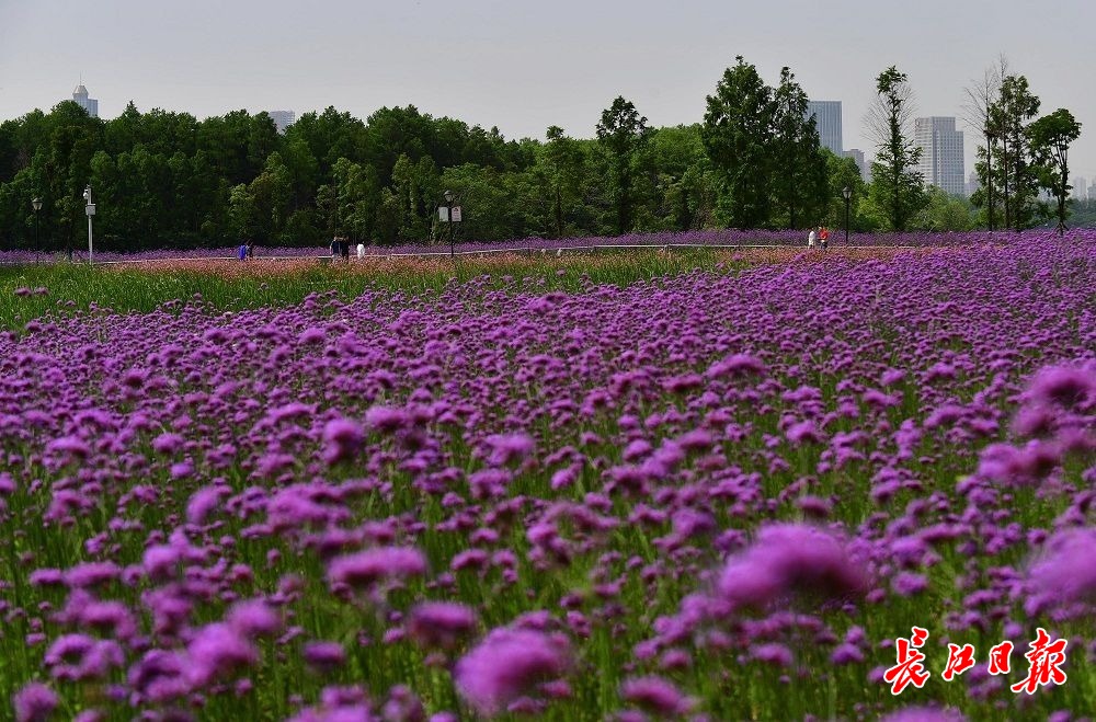 金银湖绿道白马泾桥东南湖岸,大片马鞭草花海盛开。长江日报记者李永刚 摄