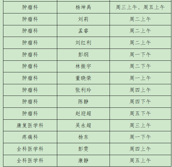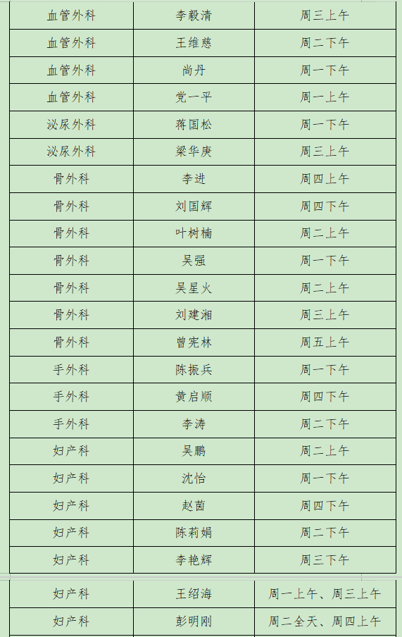 出诊时间:周一下午 名医门诊