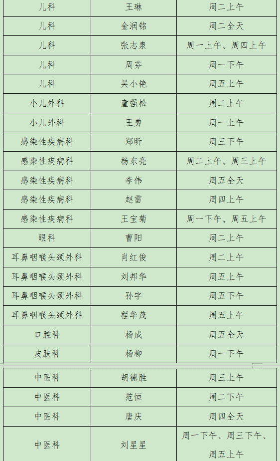 出诊时间:周二上午