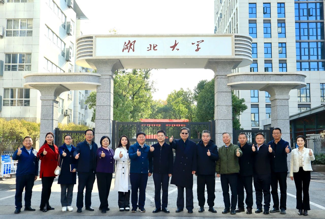 新校门位于学校西北门处,面向友谊大道。在造型上还原了湖北大学前身——武汉师范学院的牌坊样式,庄重朴实。