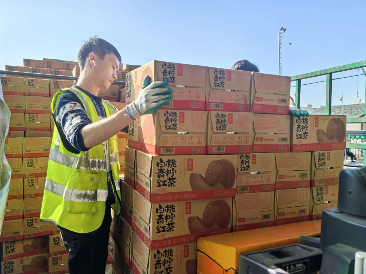 即将运往河南的茶饮料。