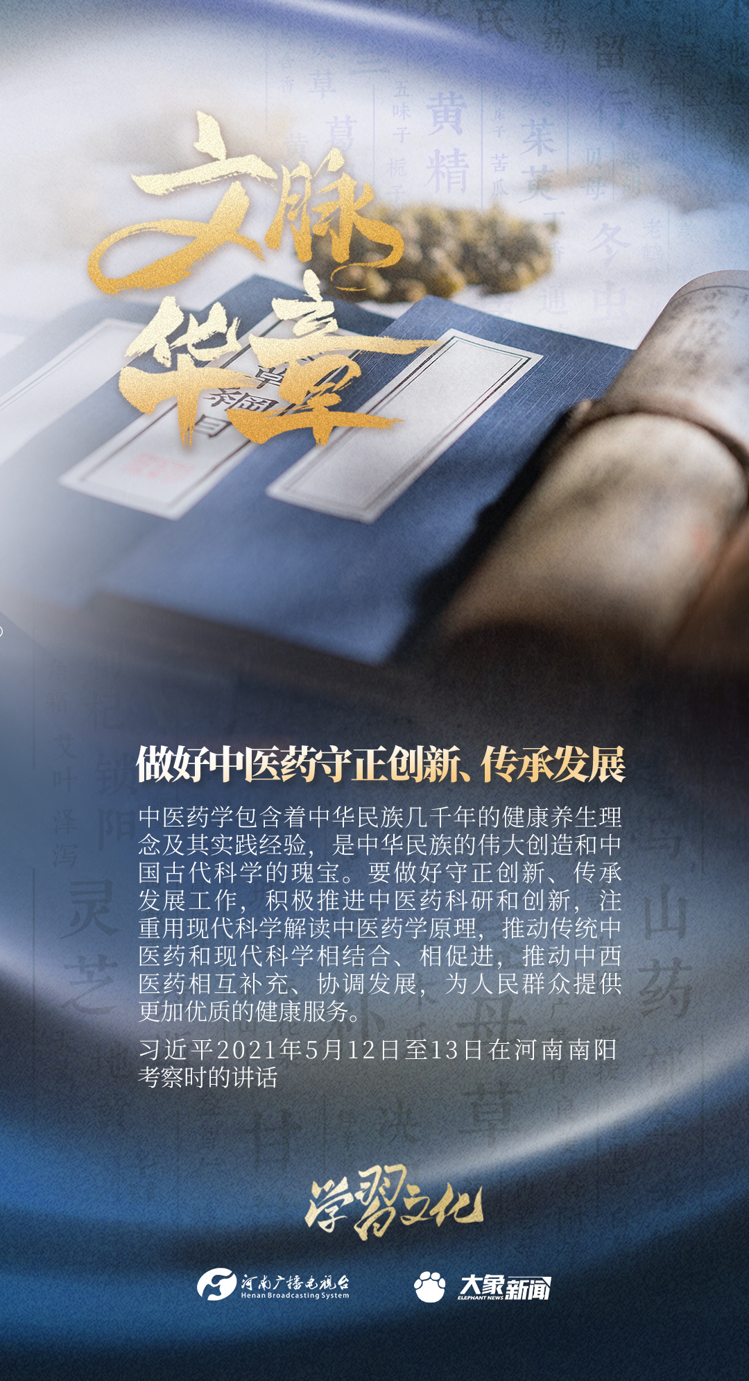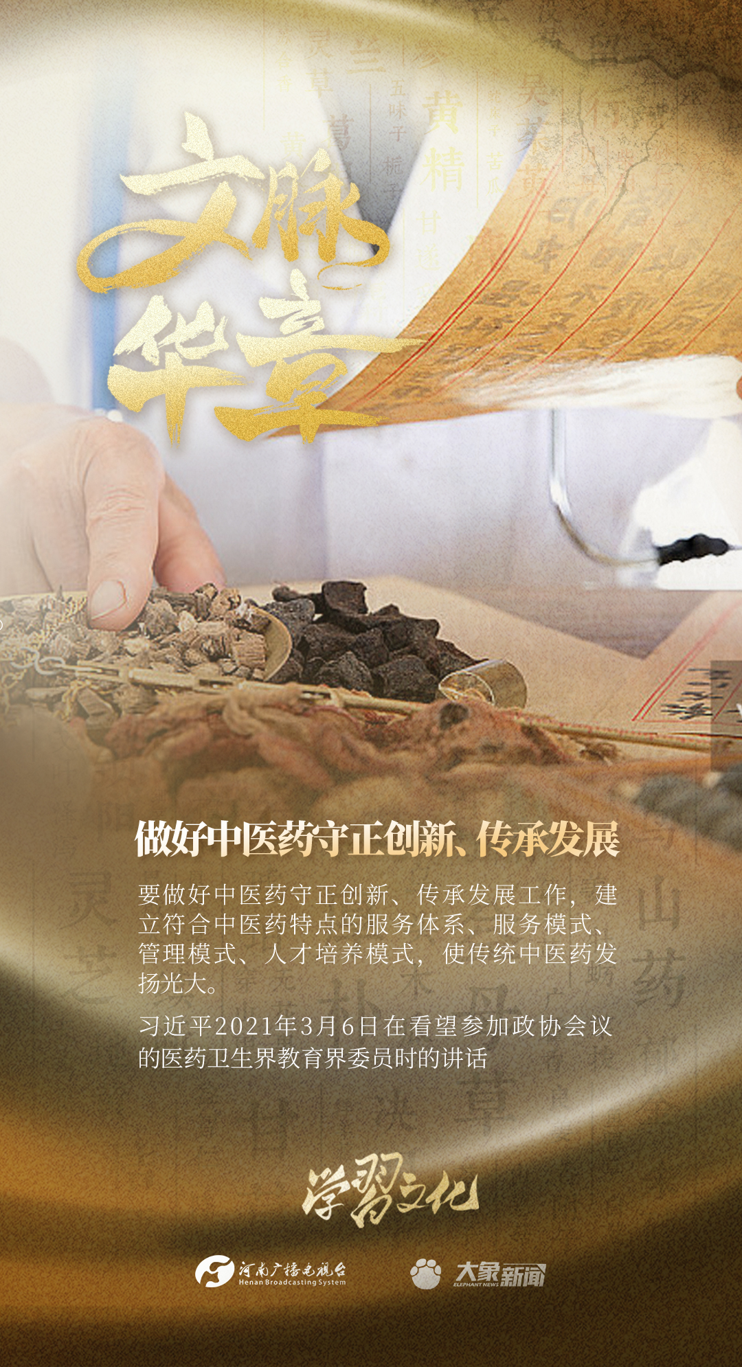 中医药是中华文明的瑰宝,如何做好创造性转化、创新性发展,一直是总书记的牵挂。大象新闻梳理了总书记针对中医药守正创新、传承发展所作的重要讲话重要指示,邀您学习。