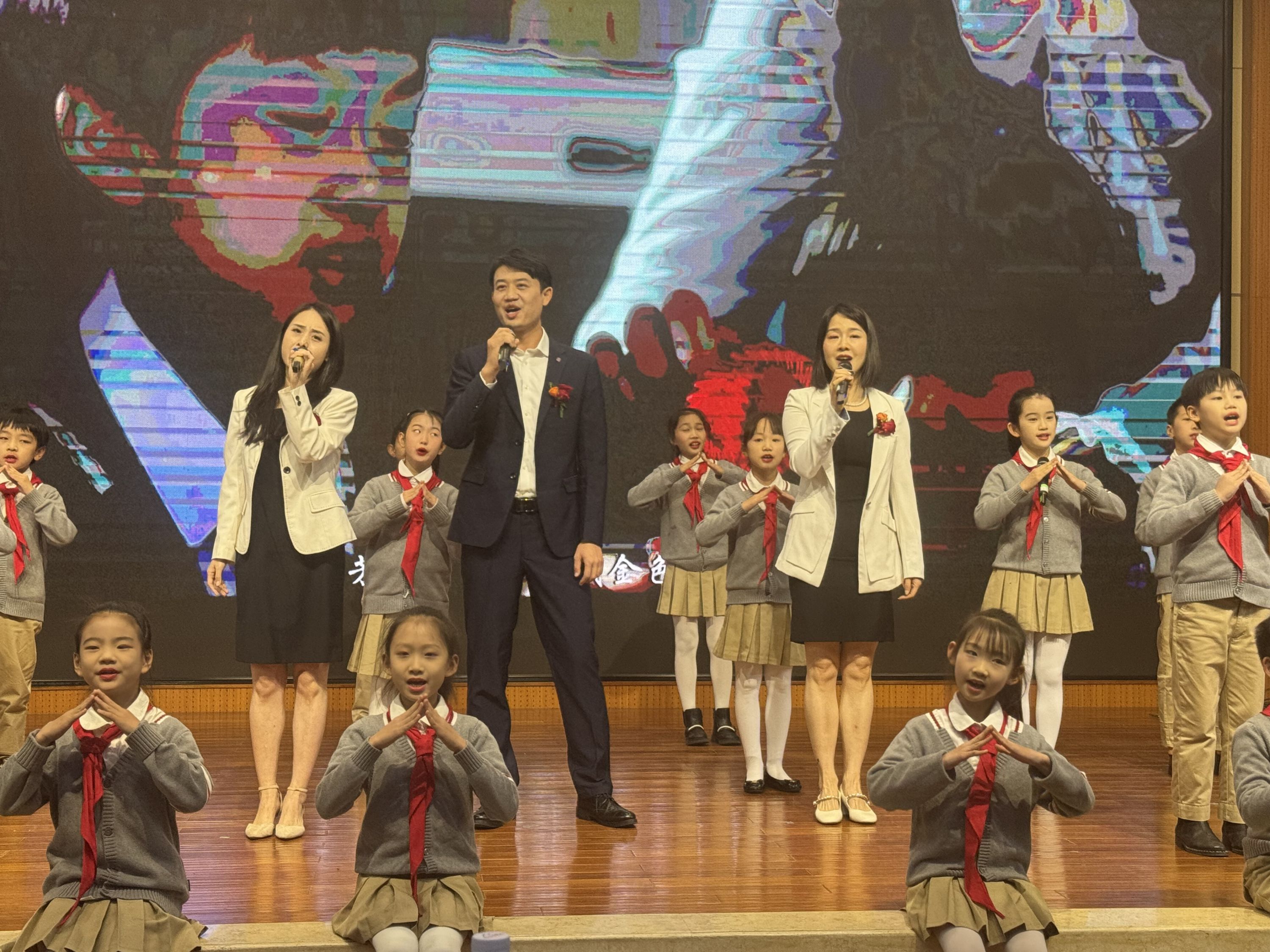 在新书发布会现场,一段视频展现了学校在培养学生爱国素养方面的丰富实践。“党润童心”栏目的定期宣讲、国旗护卫队的常规训练,在孩子心中悄然种下了强国梦,为他们的成长打下了坚实的精神基础。学生以快板的形式历数一个个生动鲜活的爱国教育案例,国旗护卫队登台亮相,军姿挺拔、步伐铿锵,口令兵一声“敬礼——”喊出了中华好男儿的志气和担当。