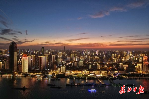 晚霞里,汉口江滩灯光璀璨。 长江日报记者苗剑 摄