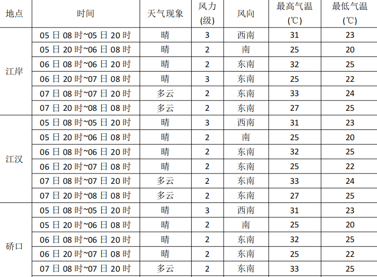 长江日报6月5日讯 5日,武汉市气象部门发布高考前后气象专题预报,根据最新气象资料分析,预计5~6日受高空偏北气流控制,我市天气晴好,气温上升;7~8日南风气流发展,云系增多;9日受高空波动影响,我市有降水发生,气温下降。