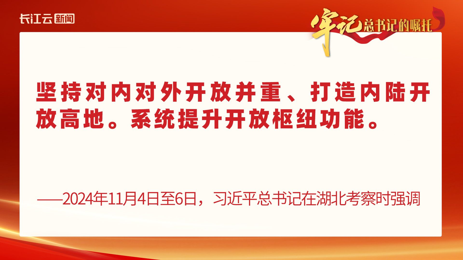 习近平总书记在湖北考察时,要求湖北“打造内陆开放高地”“系统提升开放枢纽功能”。