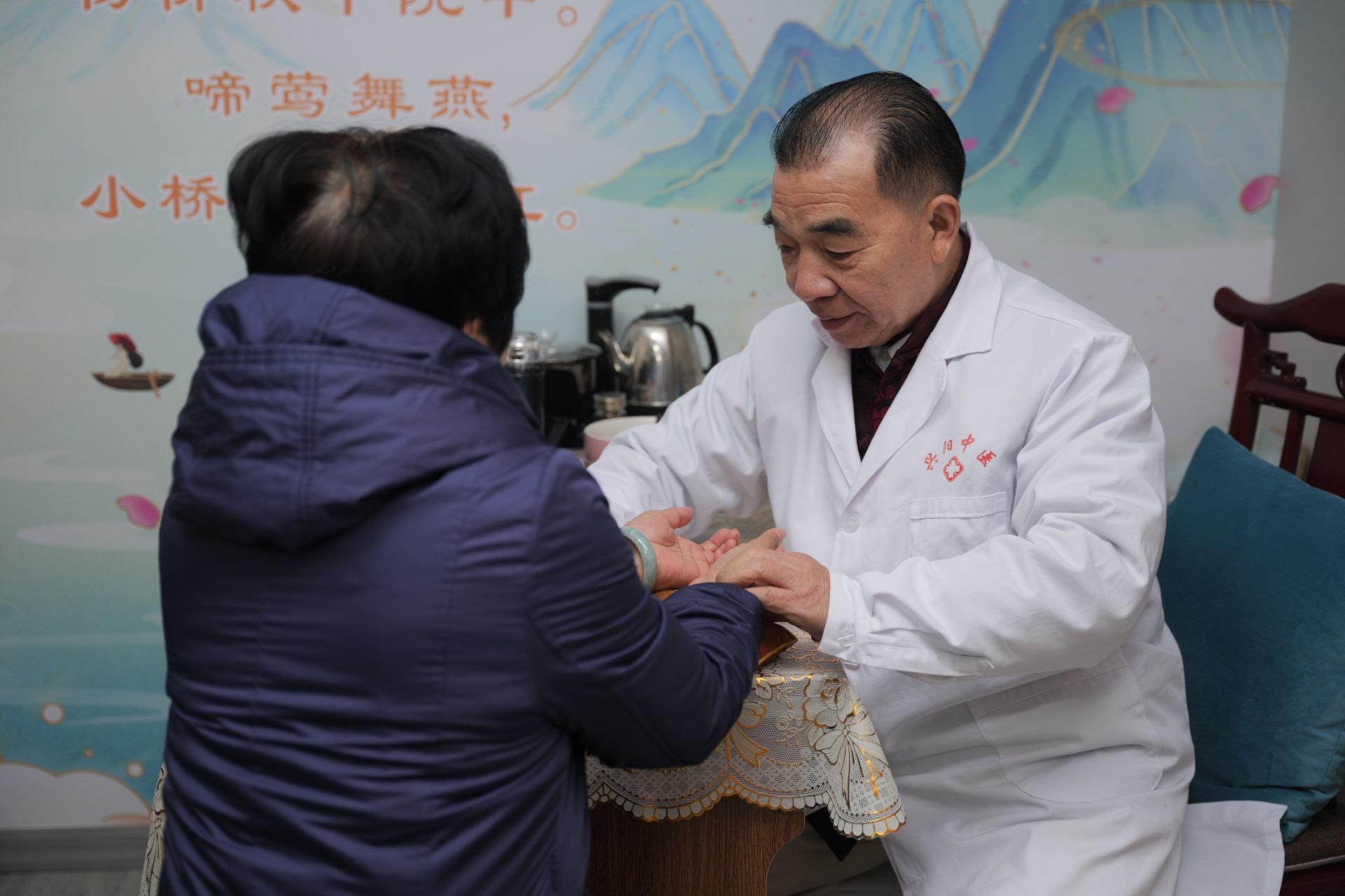 中医名家为市民把脉看诊。
