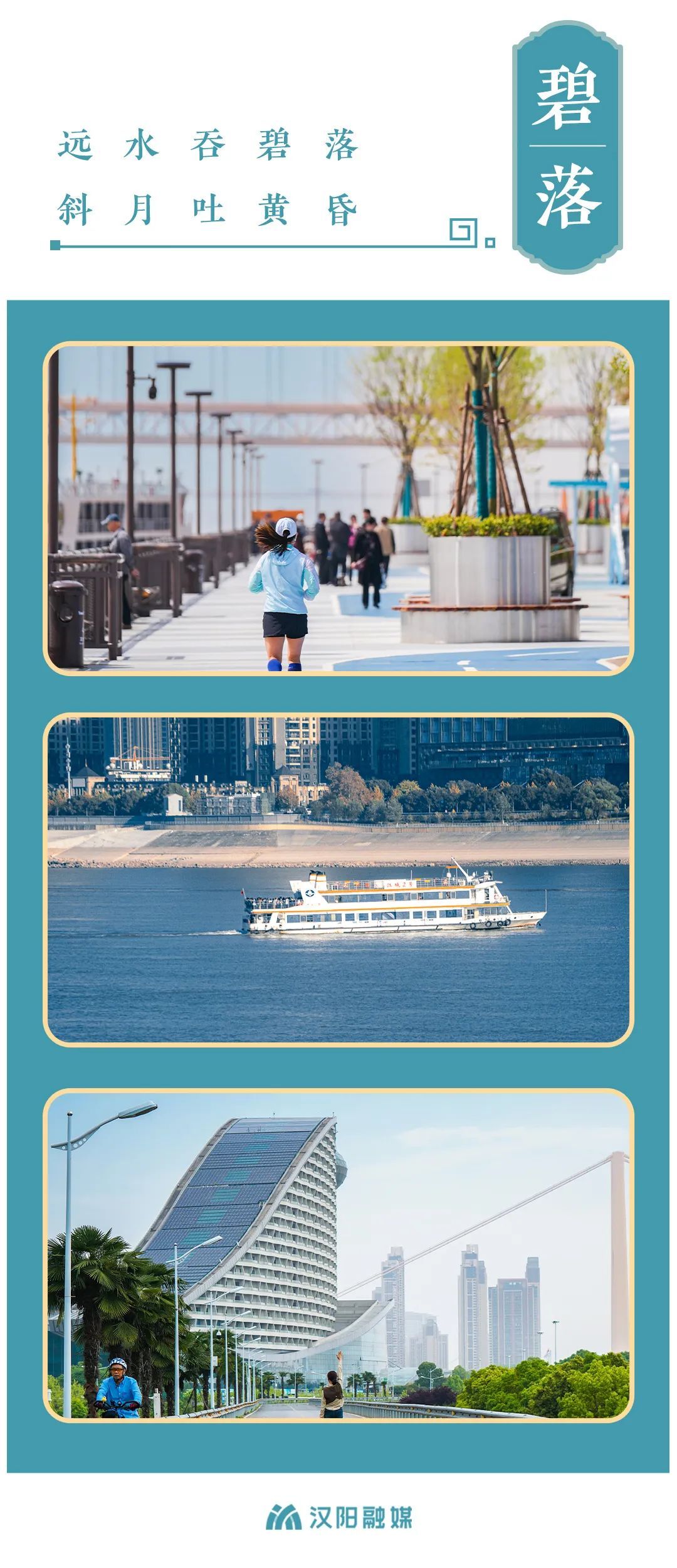 沿着汉阳江滩,一路到「杨泗港都市T台」,面对宽阔的江面,长长呼出一口积郁已久的闷气,让身体宁静下来,感受武汉大江大湖之美。