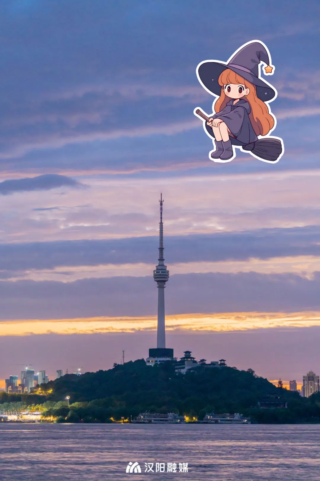 落日余晖把天染紫,傍晚的「龟山电视塔」氛围感拉满,江水悠悠,波光粼粼,风光无限。
