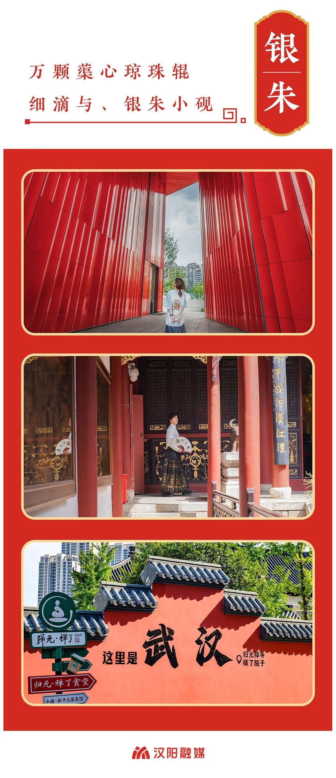 除此之外,街头点亮的灯笼,张挂的对联,冬日公园的水杉……脑海中出现的银朱色彩,让我们看到热烈、昂扬、雅致的汉阳。