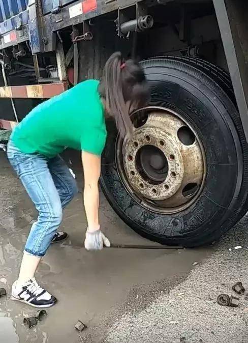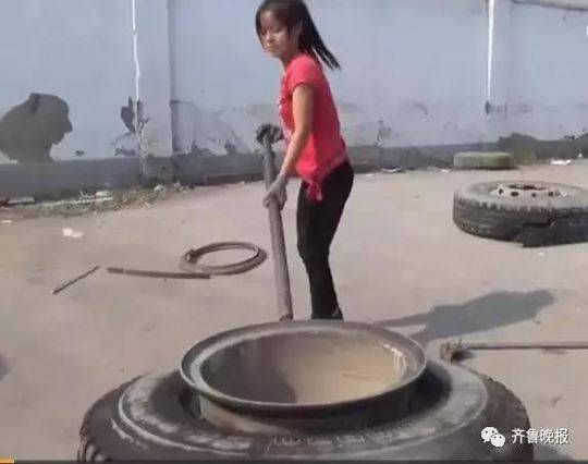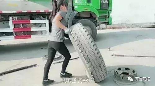 而修理轮胎就是她的工作,体重只有88斤的她,可以轻松的扒掉百斤轮胎,动作之娴熟,让一些男生都自愧不如。