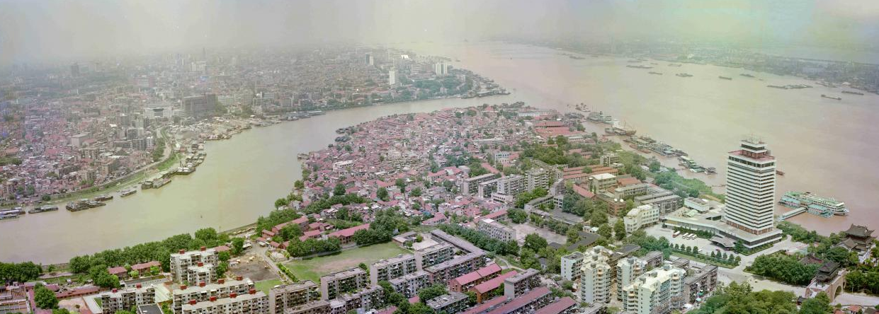 上世纪90年代汉江入江口,看得到汉江北岸有很多小码头。