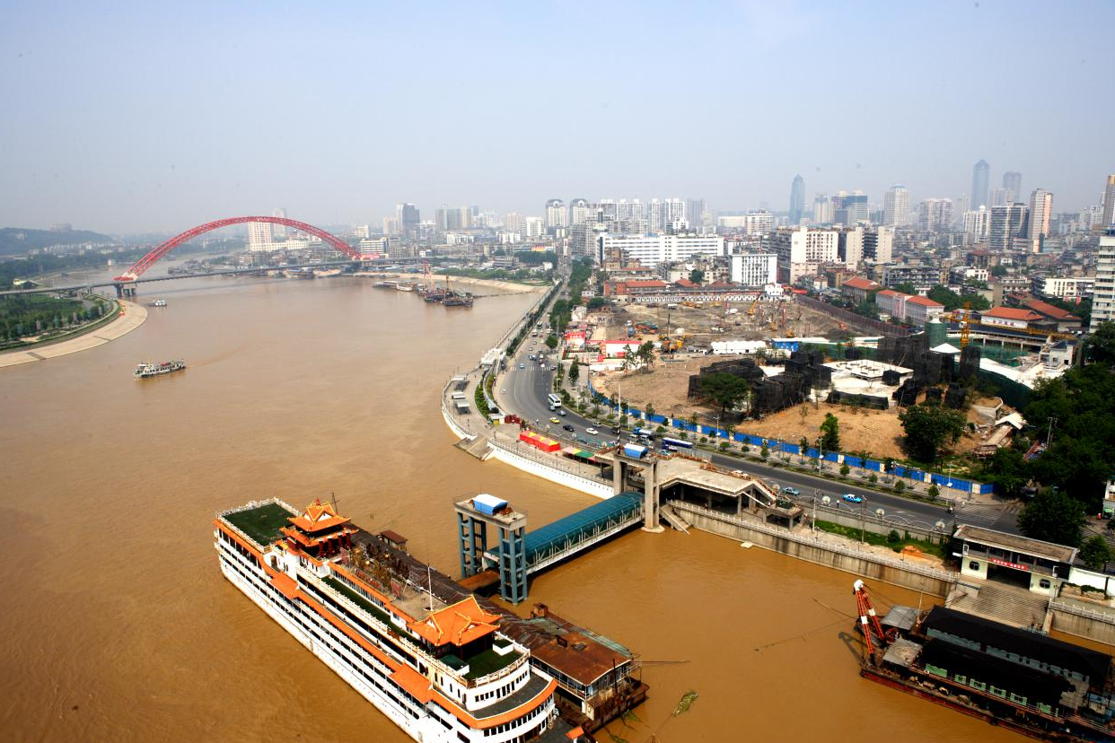 如今的汉江入江口,江岸整治得整洁美观。