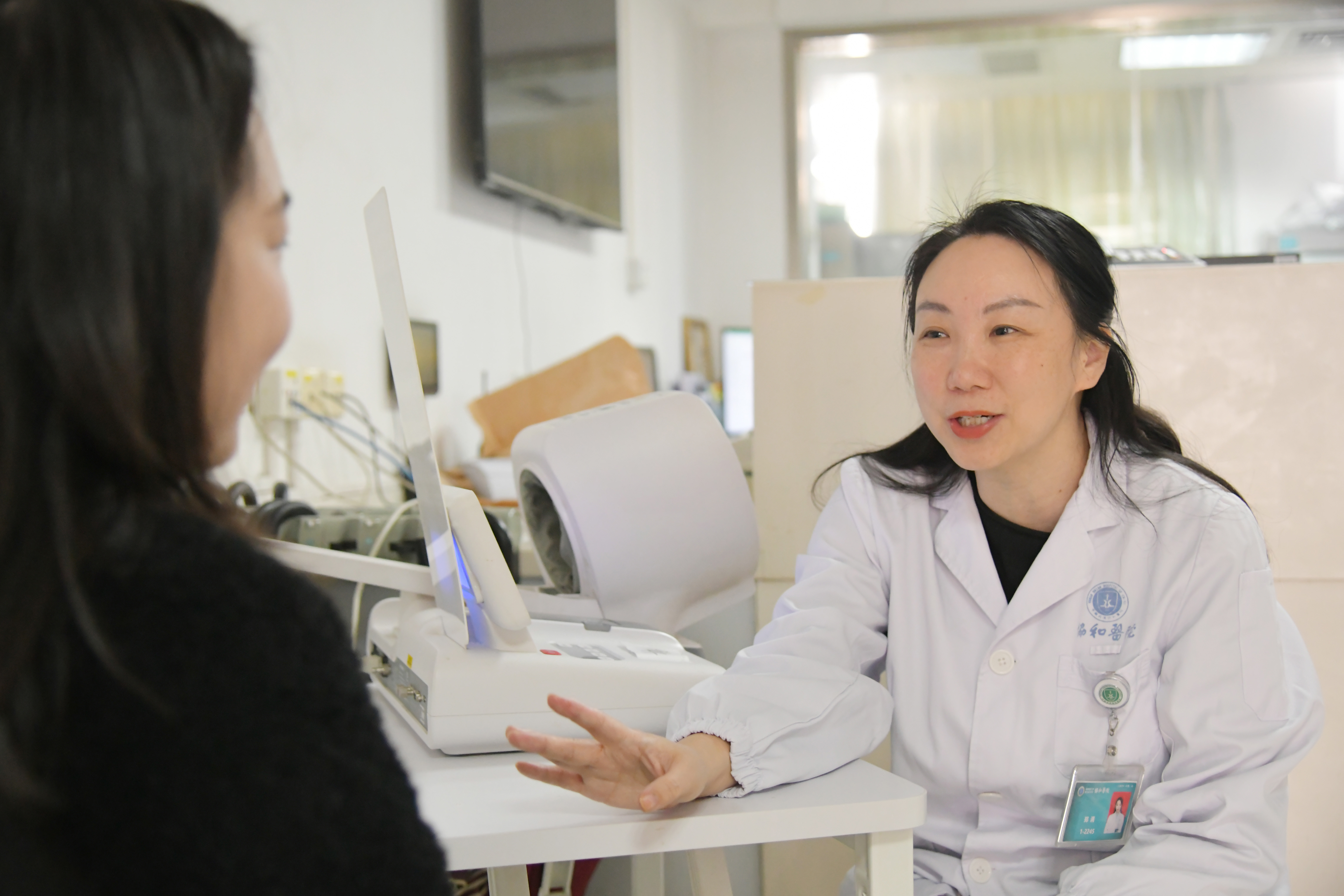 内分泌科郑涓教授为佳佳(化名)复查。陈有为 摄