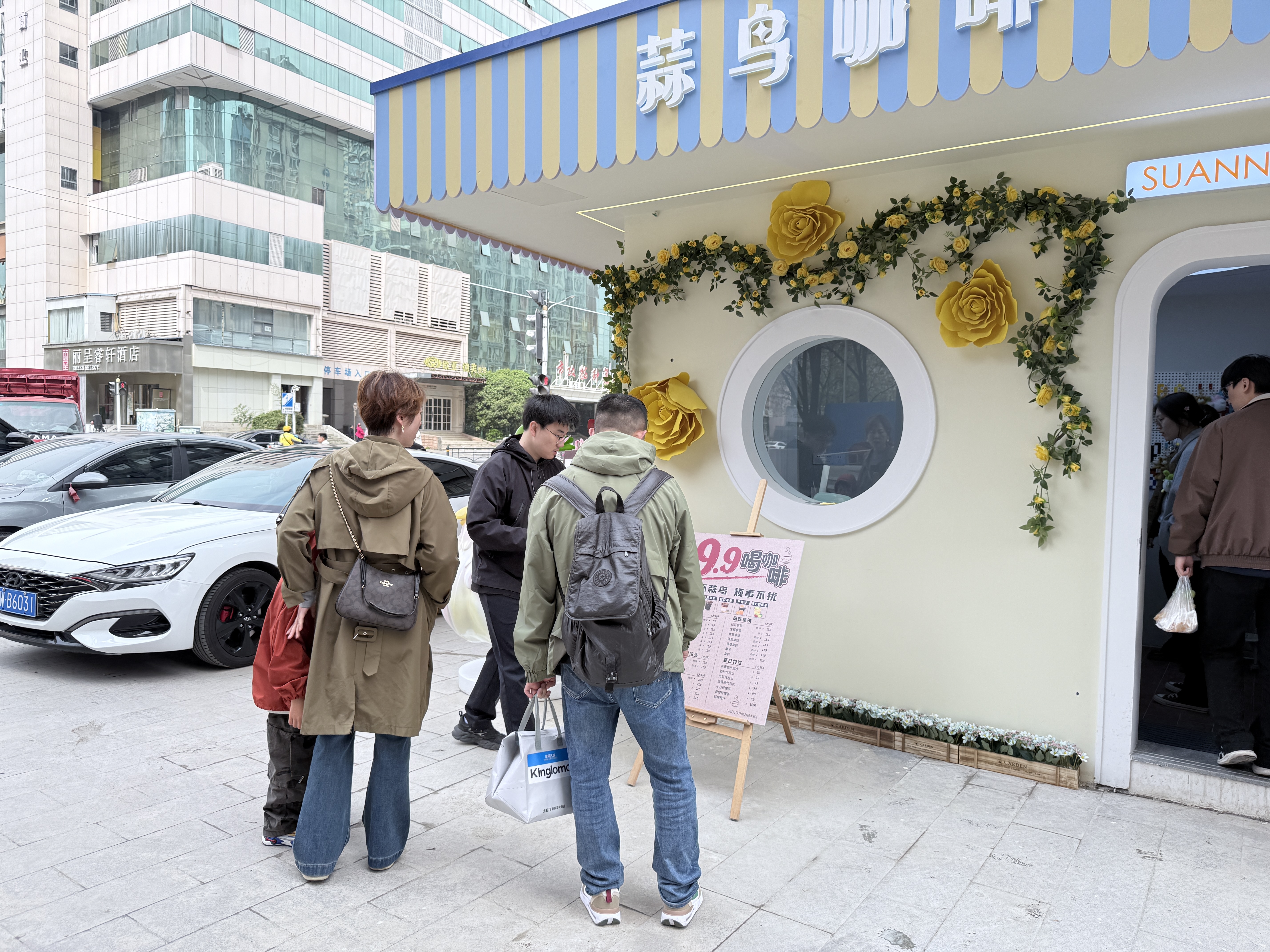 4月1日上午9时,长江日报记者来到位于金墩街汉口火车站附近的蒜鸟咖啡店,前来打卡拍照买咖啡的顾客络绎不绝,很多人都是旅客。