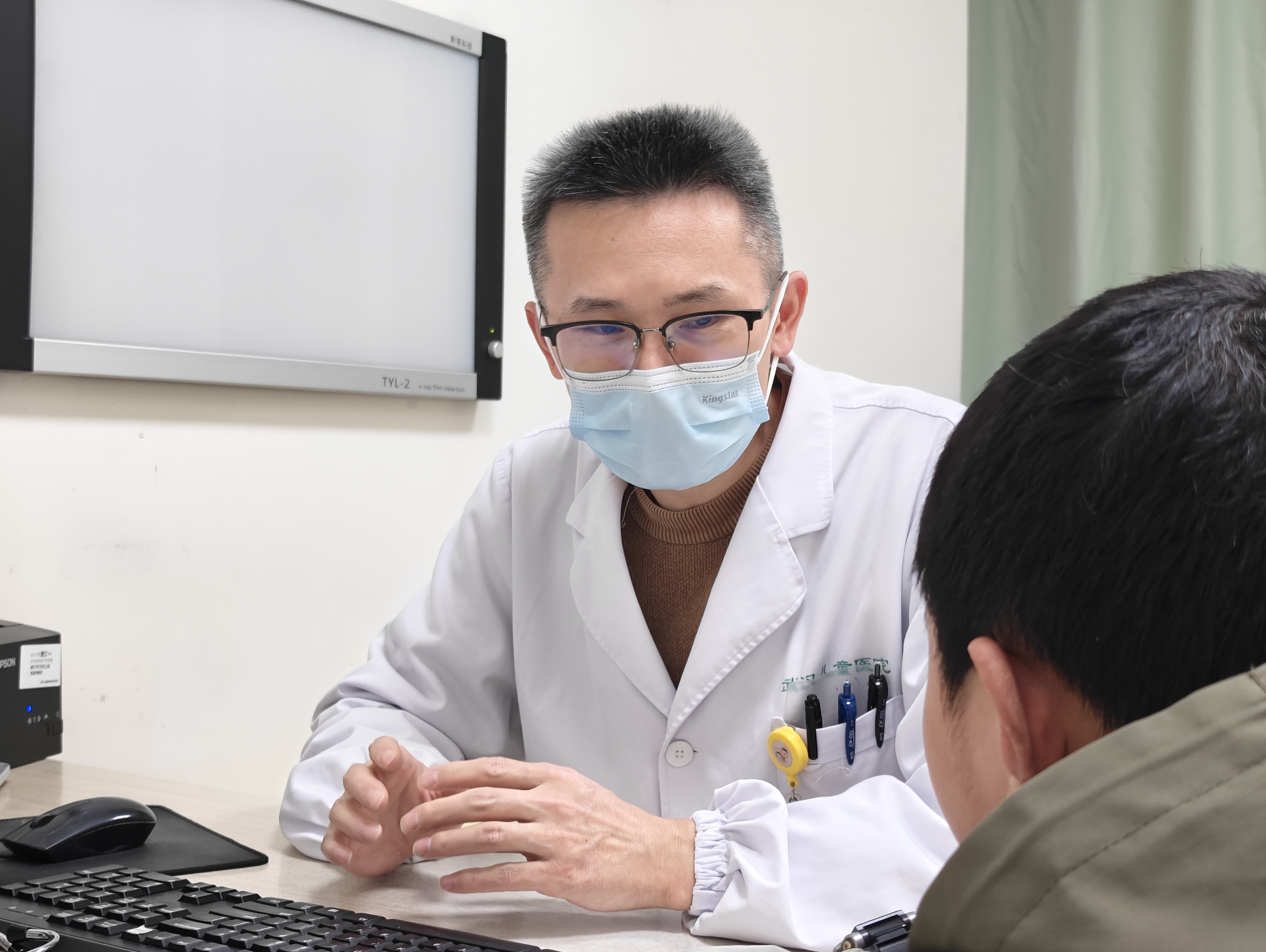神经内科主治医师黄胜在夜间门诊接诊患儿。通讯员官笑涵 摄