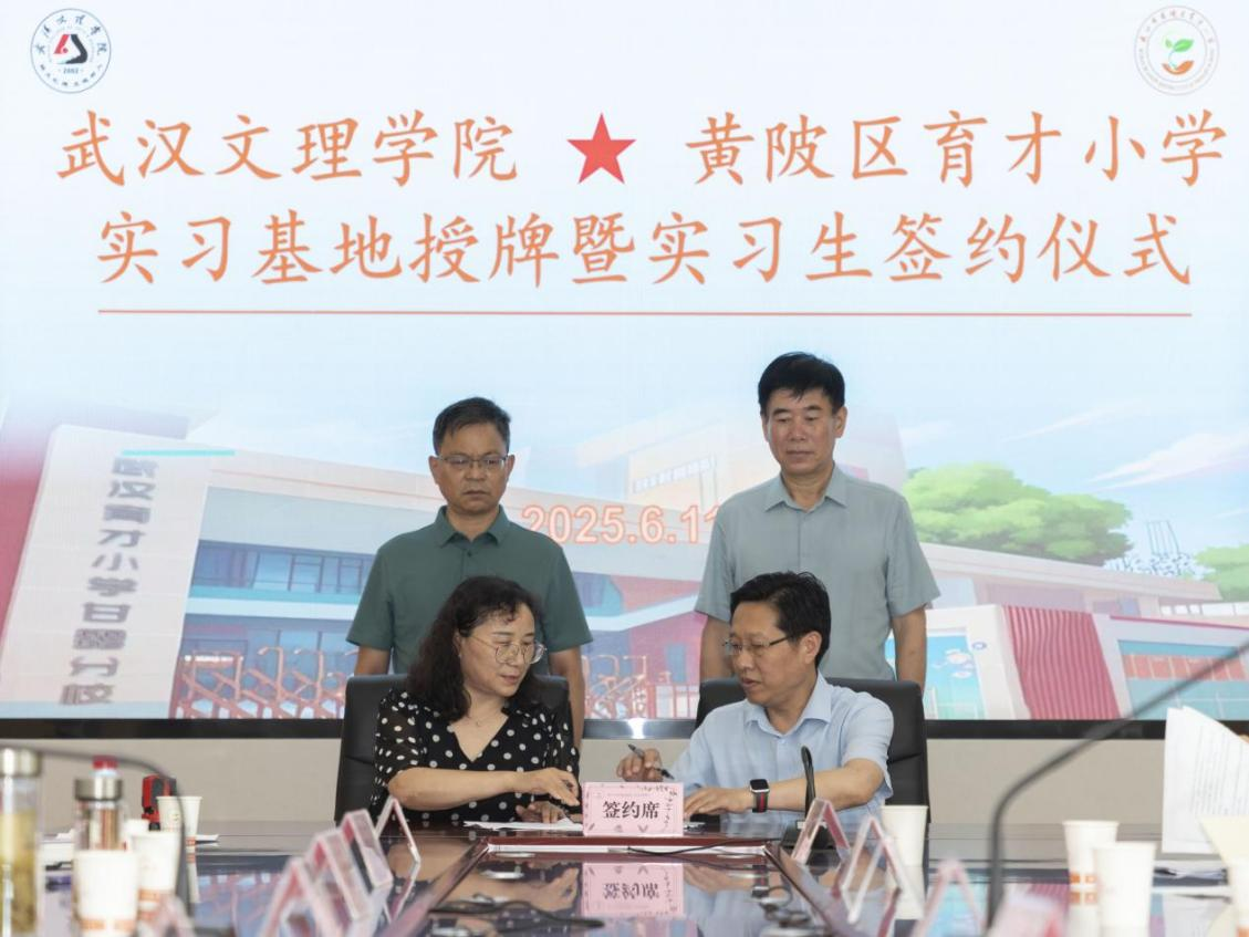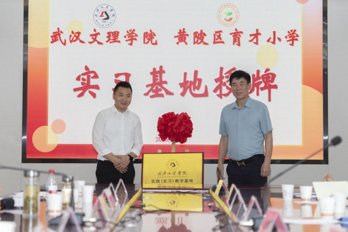 6月11日,武汉文理学院与黄陂区三校实习基地授牌暨实习生签约仪式在黄陂区育才小学甘露校区举行。