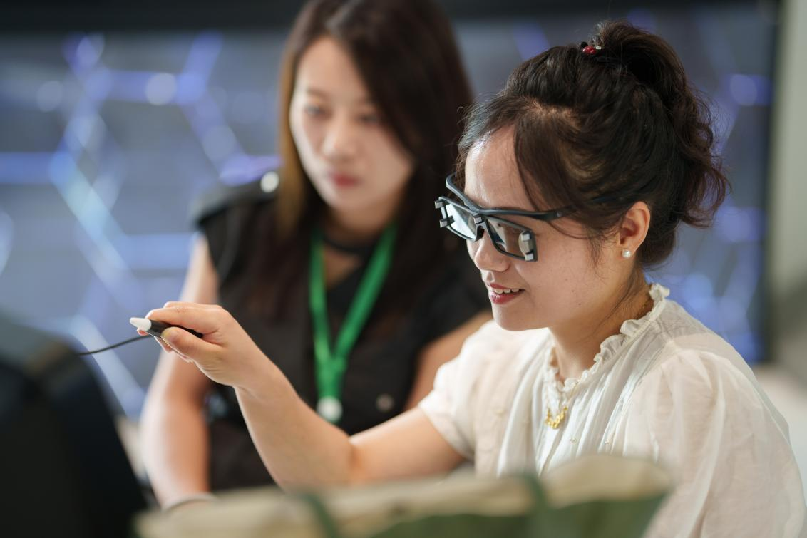 乡村教师在元宇宙实践教学空间体验模拟解剖。(华中农大 供图)