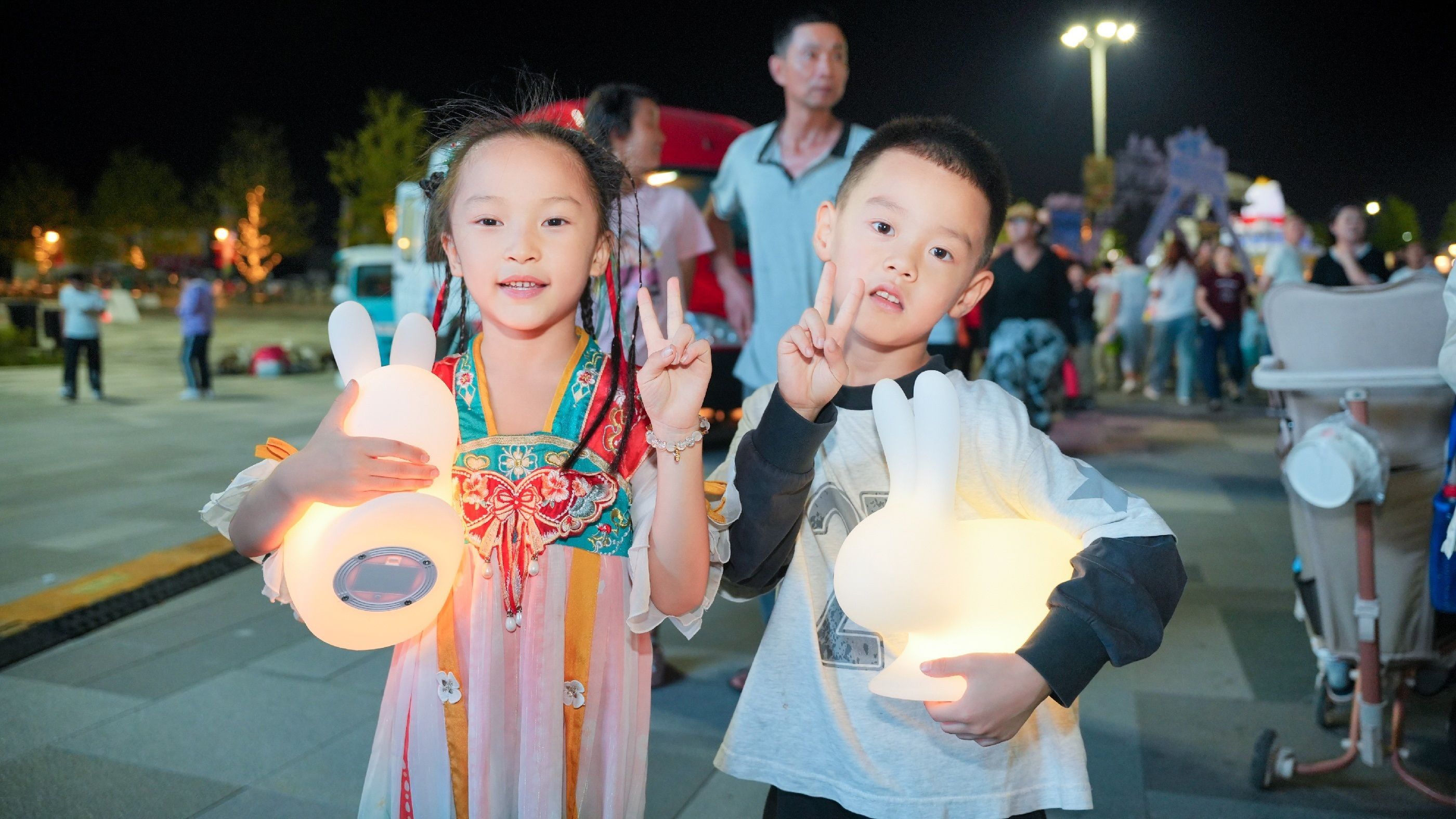 拿到兔子灯的小孩很高兴
