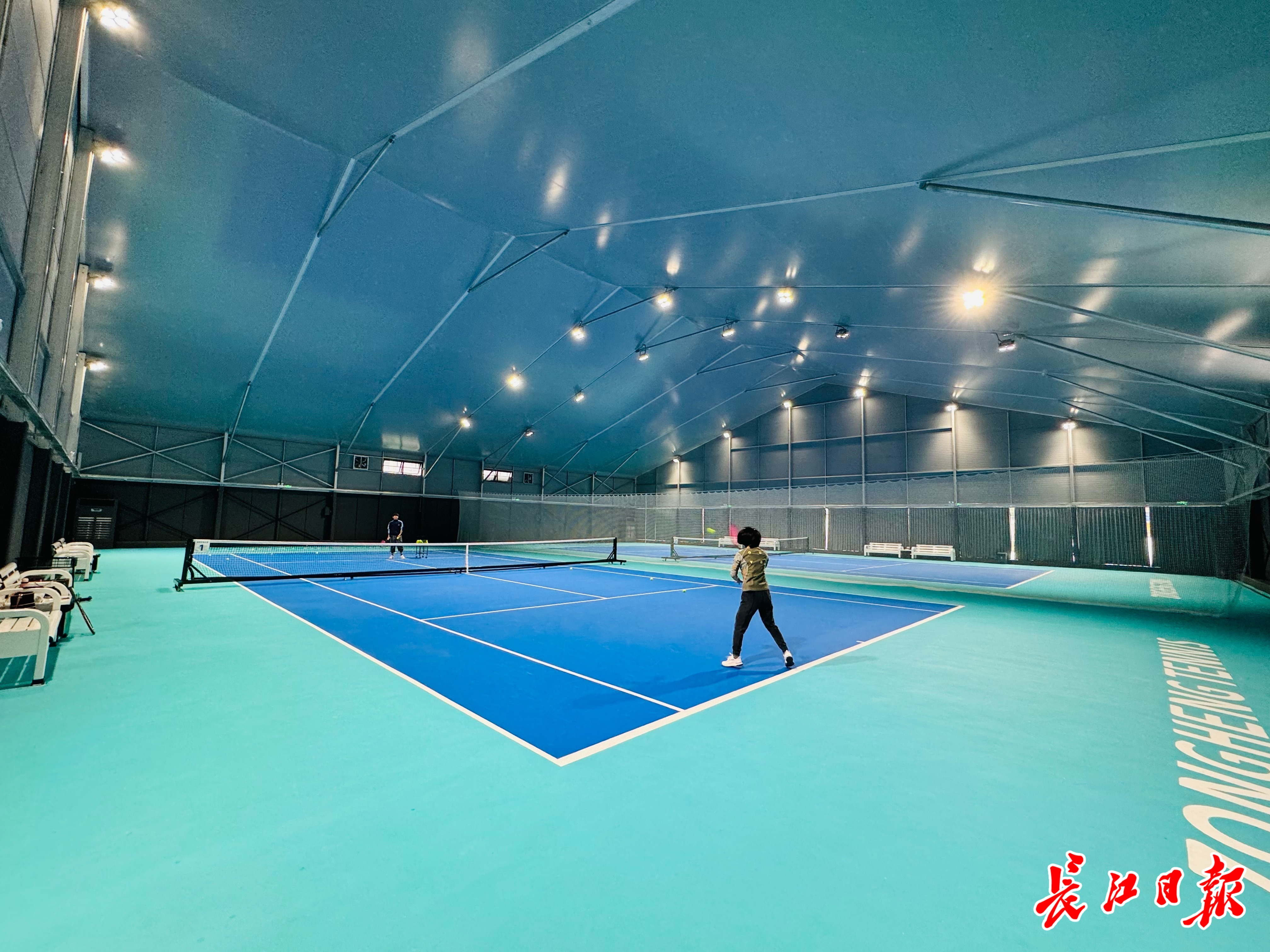 武汉纵横体育产业发展有限公司运营经理雷道远介绍,这座总面积约2万平方米的体育公园以“自然运动、和谐共生”为设计理念,构建“一站式”全业态体育主题园区。园内设有标准化的综合运动场馆,篮球、羽毛球、网球、乒乓球等各类运动场地。