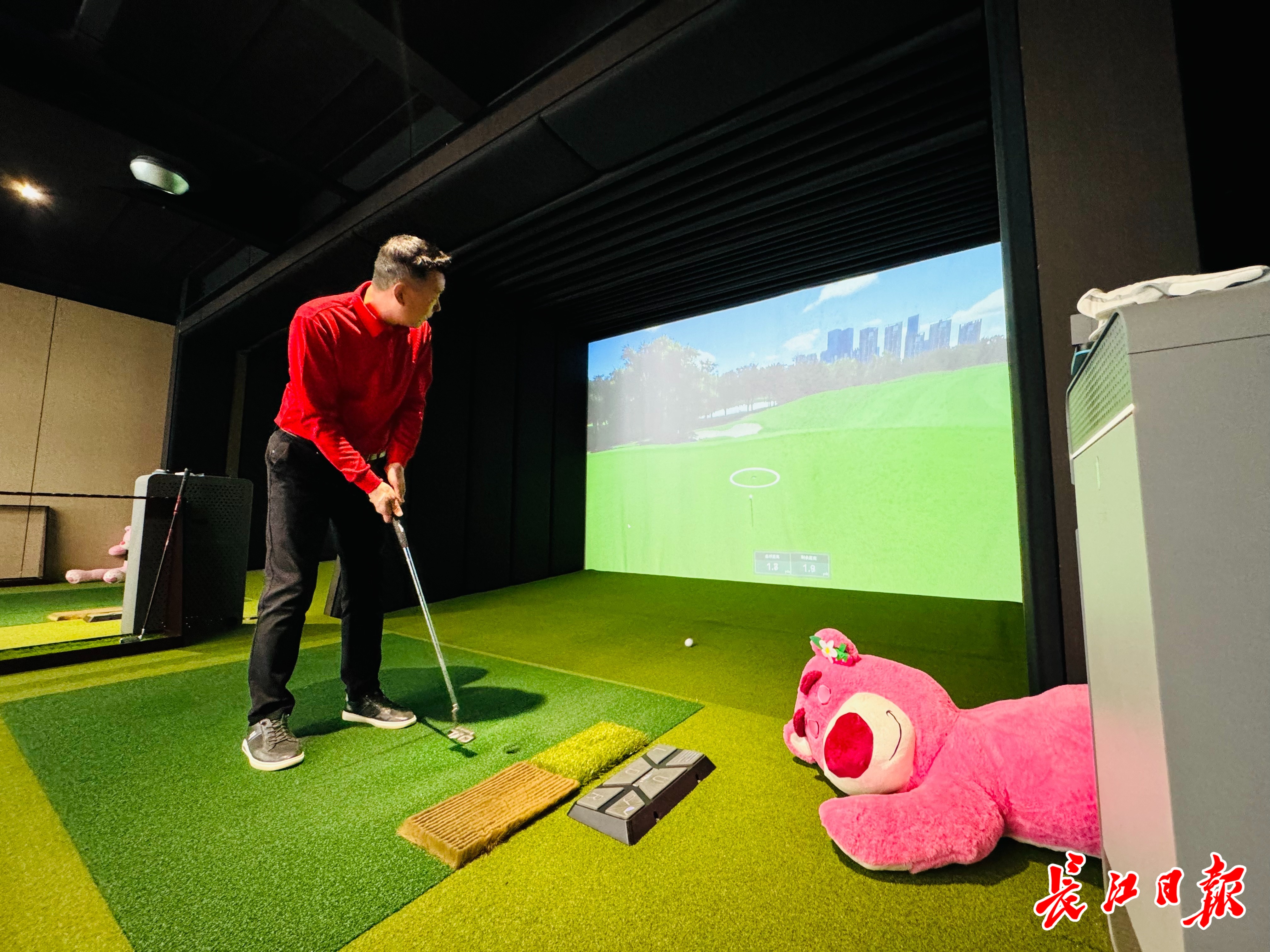 记者注意到,除了基本的运动功能外,该公园还融入了专业体育培训、企业赛事团建、休闲消费等多种业态。其中,普拉提、空中蹦极等课程特别受欢迎。每到下班时间,不少上班族都会到这里参加课程。在室内高尔夫教室,学员们可以在模拟的18洞环境中挥杆击球。还有一些较为小众的健身课程也非常受欢迎,如运动康复训练等。