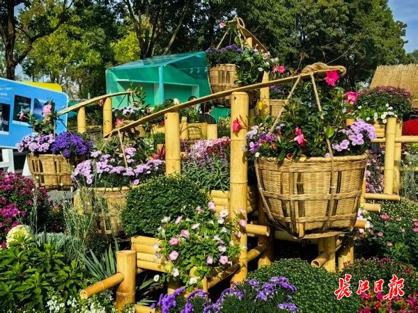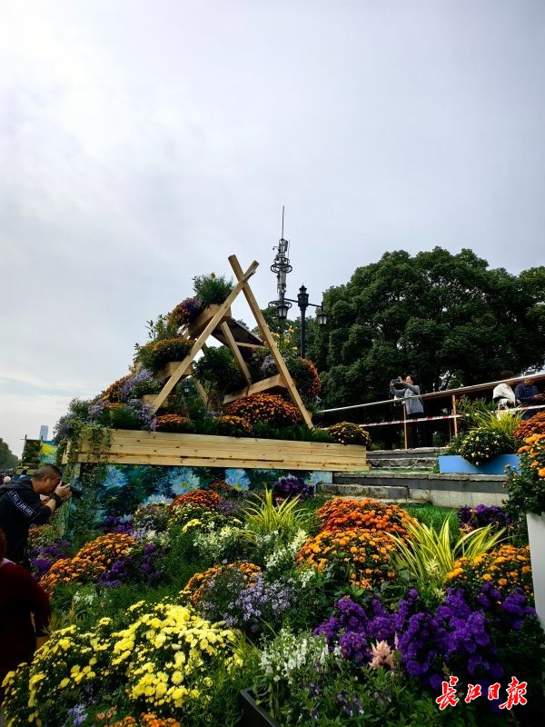 市城建集团、市交通局、市规划研究院等单位,纷纷结合行业特点,将居民新居、长江二桥、城市山水等元素与菊花融合造景,并设置互动场景,供市民打卡。