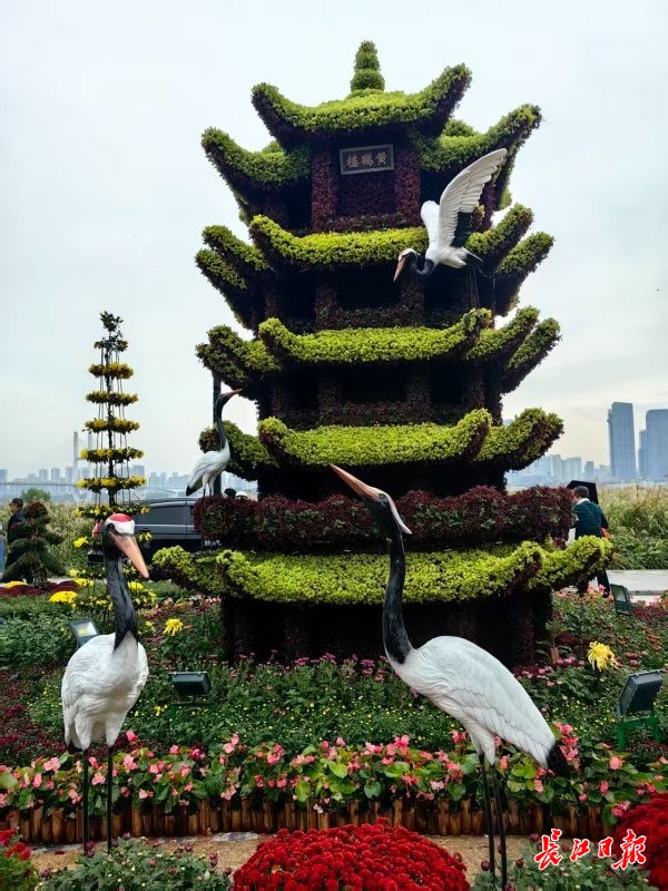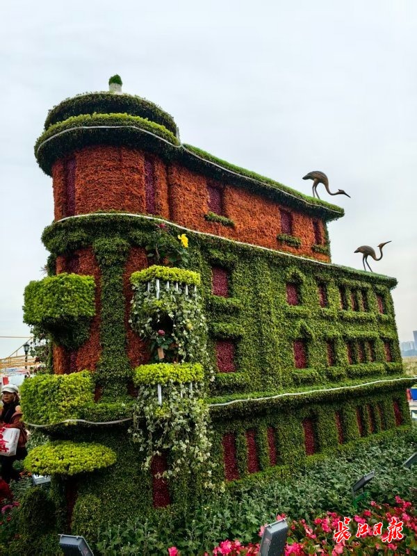 市文旅集团将黄鹤楼、巴公房子、知音号三大城市IP,用绿雕的形式再现,造型逼真,制作精致,甫一亮相,迅速跃升为人气景点。