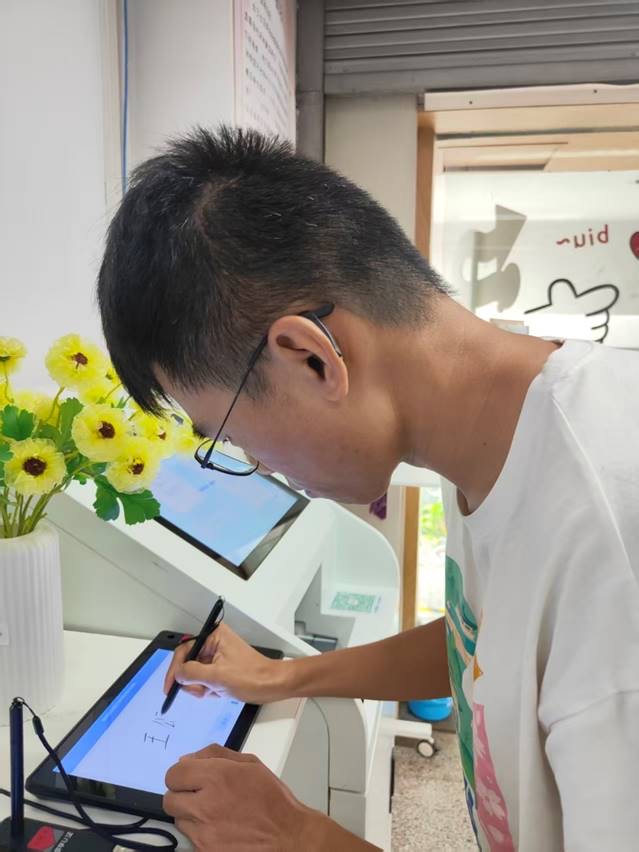 无偿成分献血者正在进行电子签名。 通讯员肖莉娇 摄