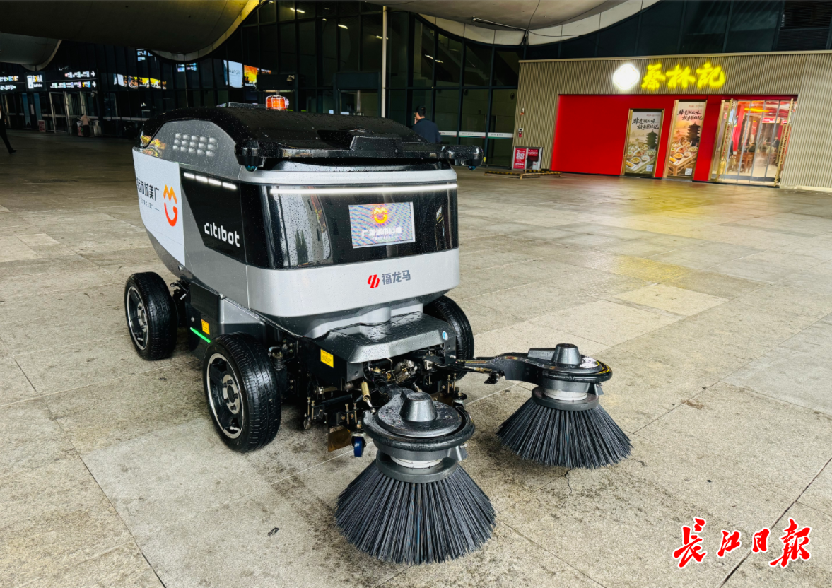 长江日报大武汉客户端11月6日讯 11月6日凌晨4时30分,武汉火车站东广场迎来一位特殊的“清洁工”——一台智能无人清扫机器人正式“上岗”。