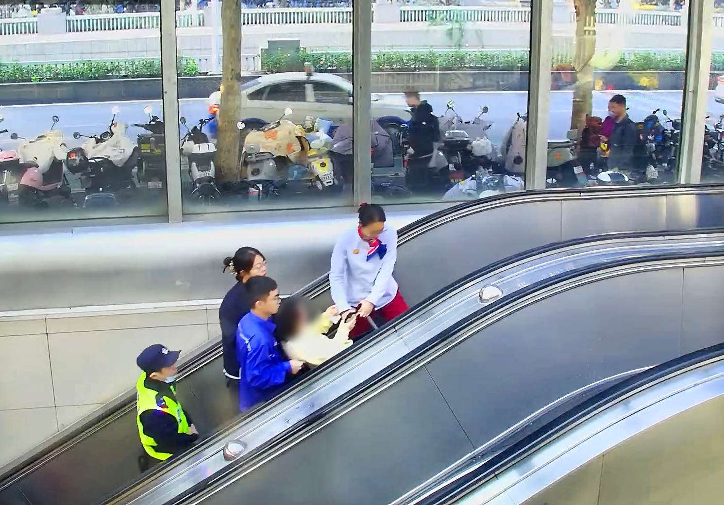 大约3分钟后,乘客的情绪逐渐缓和。她哽咽着说自己怀孕已有20周,途中突然感到不适,幸好身边热心乘客及时伸手相助。经她同意,熊风与驻站民警等人用轮椅将她一路护送至附近的省妇幼保健院。