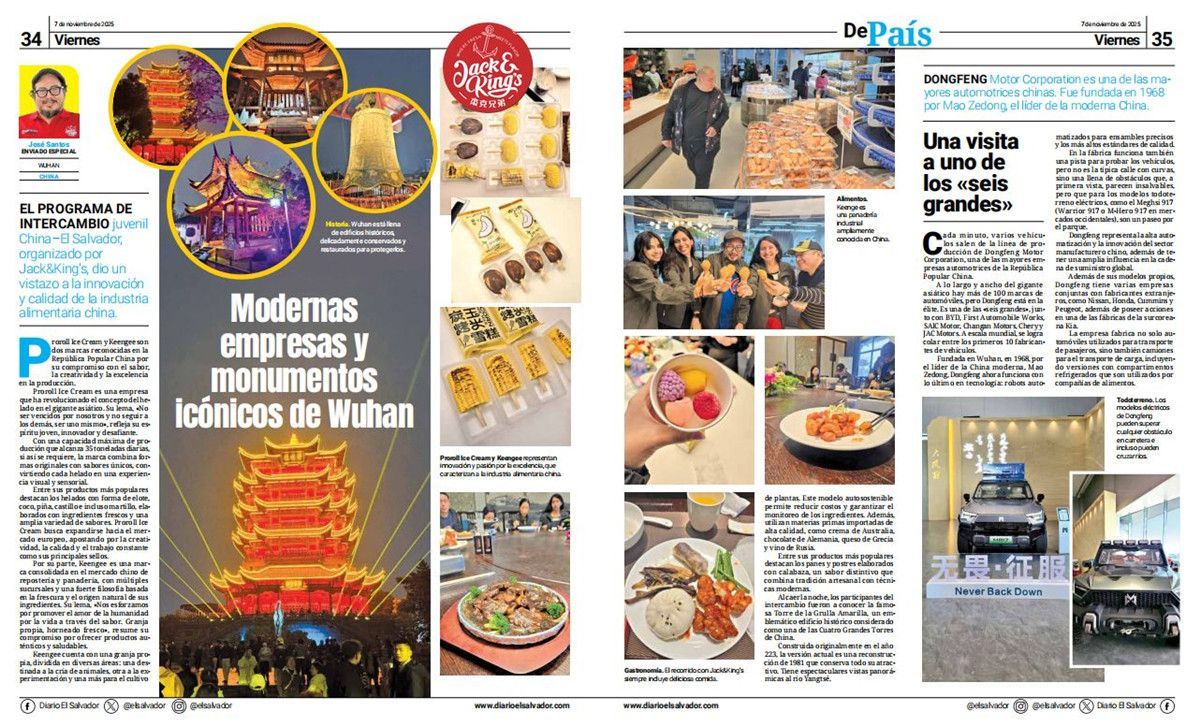 长江日报大武汉客户端11月13日讯(记者范婷婷 通讯员李文慧)11月2日至8日,《萨尔瓦多日报》连续7天推出整版报道,图文并茂地介绍“杰克兄弟寻味中国·中萨青年交流计划”代表团在武汉的美食文化体验之旅。