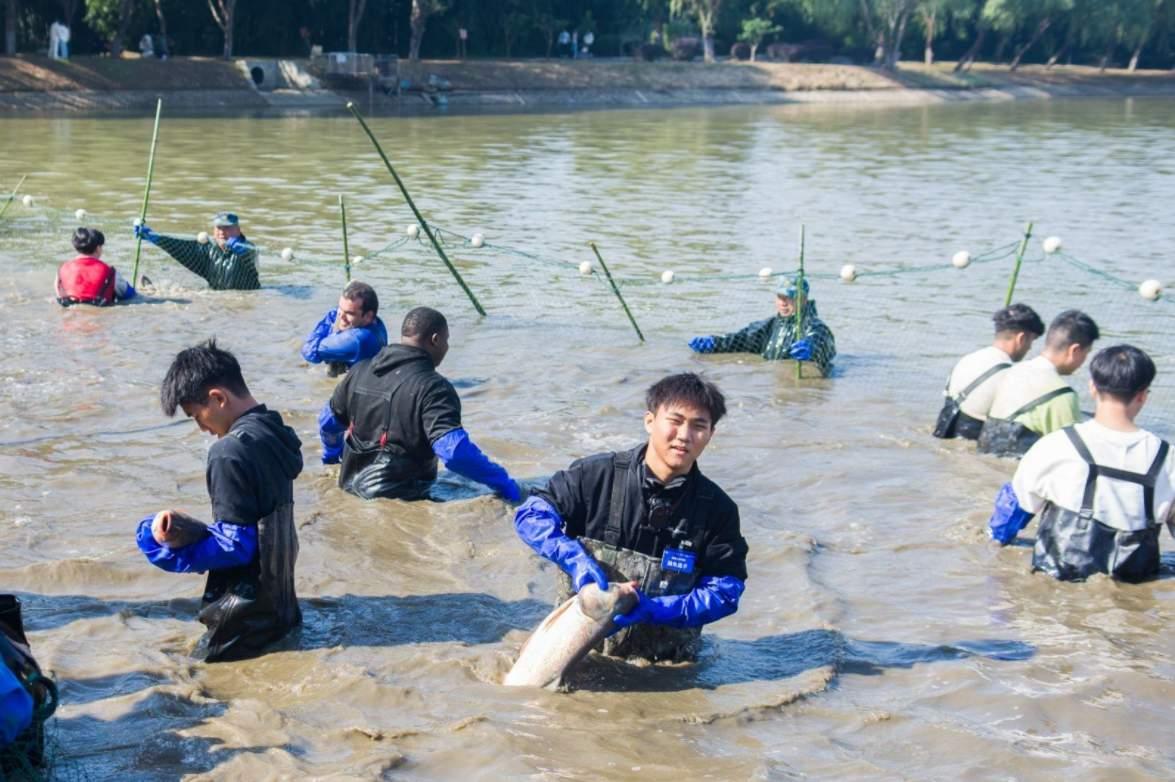 一番激烈角逐后,汽车与交通工程学院学生姚昌荣捕获一条8.7公斤的大鱼,一举夺得“捕鱼王”头衔。他抱着沉甸甸的“战利品”。校友宋合兴则捕获一只重达9.2公斤的“鱼王”。他高高举起这份沉甸甸的收获,骄傲地说:“毕业二十来年,今天代表25万校友回家,希望全校师生年年有余,万事大吉。”