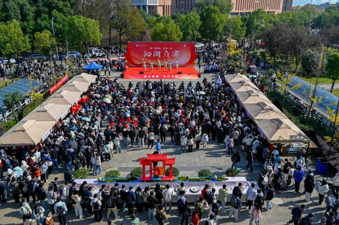 “新鲜鱼丸出锅啦!大家排队一个个来!”厨师揭盖吆喝,带着鱼鲜味的氤氲蒸汽渐渐涌入队伍。美食小庙会上,排队长龙蜿蜒数十米。大厨们各显神通,巧手搓鱼丸,快刀削鱼面,现场菜肴精致别样,吸引围观师生拍照晒图。