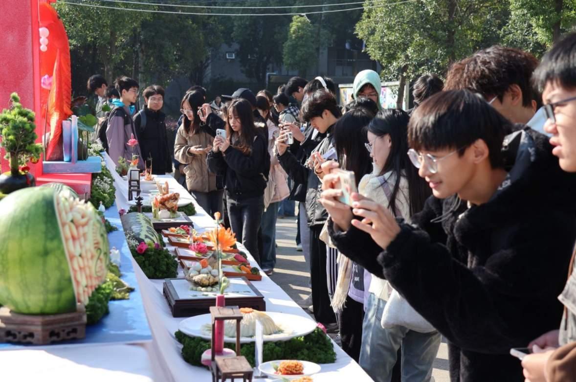 今年是该校首次设立“最美厨师”奖项,对过往一年在菜品创新融合、学生满意度等方面表现突出的8位厨师予以表彰。厨师吴会斌今年打造的“梅兰竹菊”菜品,以四季风采展现校园韵味,获评“最佳视觉呈现奖”。作为“沁湖鱼宴”的菜品摆盘总设计师,吴会斌以“鲤鱼跃龙门”的生动造型,呼应“向上向美,力行力新”的沁湖文化。