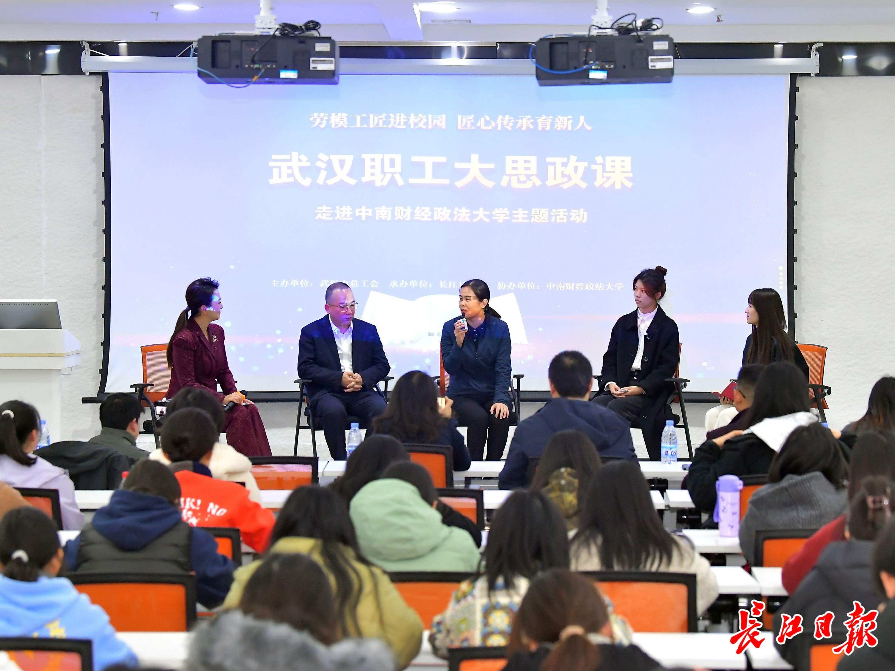 长江日报大武汉客户端11月28日讯(记者刘克取 通讯员贺鹏)“人生的价值,不取决于起点在哪里,而在于你选择用什么样的姿态走完全程。”全国技术能手、中冶武勘首席技师徐凡站在讲台前,讲述他从一名基层派遣工成长为全国技术能手的奋斗历程。11月27日下午,“劳模工匠报告团”走进中南财经政法大学,为工商管理学院120余名学生讲述一场关于坚守、奉献与拼搏的武汉职工“大思政课”。