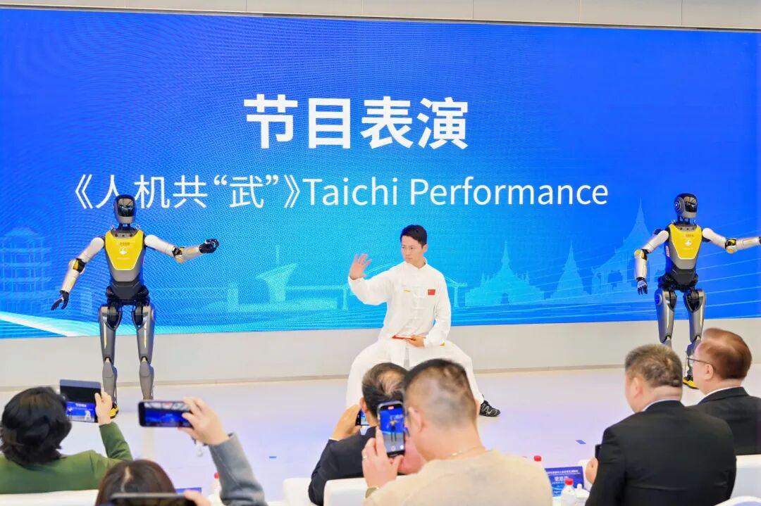 由世界健身气功八段锦、易筋经冠军王军老师带领湖北人形机器人创新中心机器人共同带来的新创节目《人机共“武”》惊艳四座,让现场观众一同感受到中国“光芯屏端网”之城和人形机器人的科技魅力,为中泰人文交流注入更多创新活力。